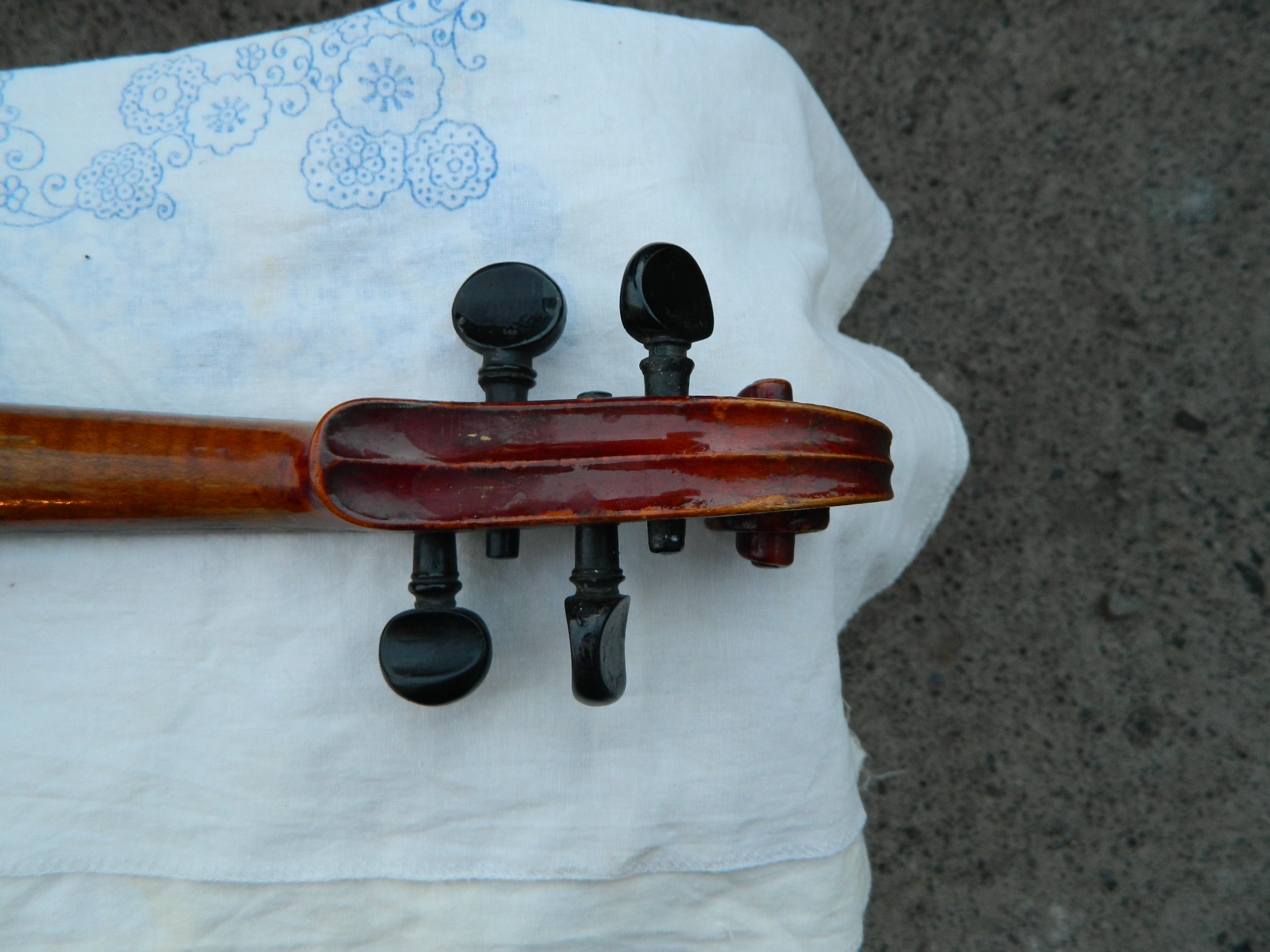 Мануфактура, не мастер. Выжженный штампик возле пятки с буквами SMS и скрипичным ключиком не приходилось раньше встречать. Блестящим лаком поверх родного в любом случае зря покрывали, лучше бы накладку на черное дерево заменили да скрипку в порядок привели. Хотя иногда приходится буквально по косточкам перебирать такие инструменты если они хранились в сырости. Для обучения в музыкальной школе годится, в училище-уже под вопросом. Пару сотен долларов при удачном раскладе где то на переферии за эту скрипку выручить можно.