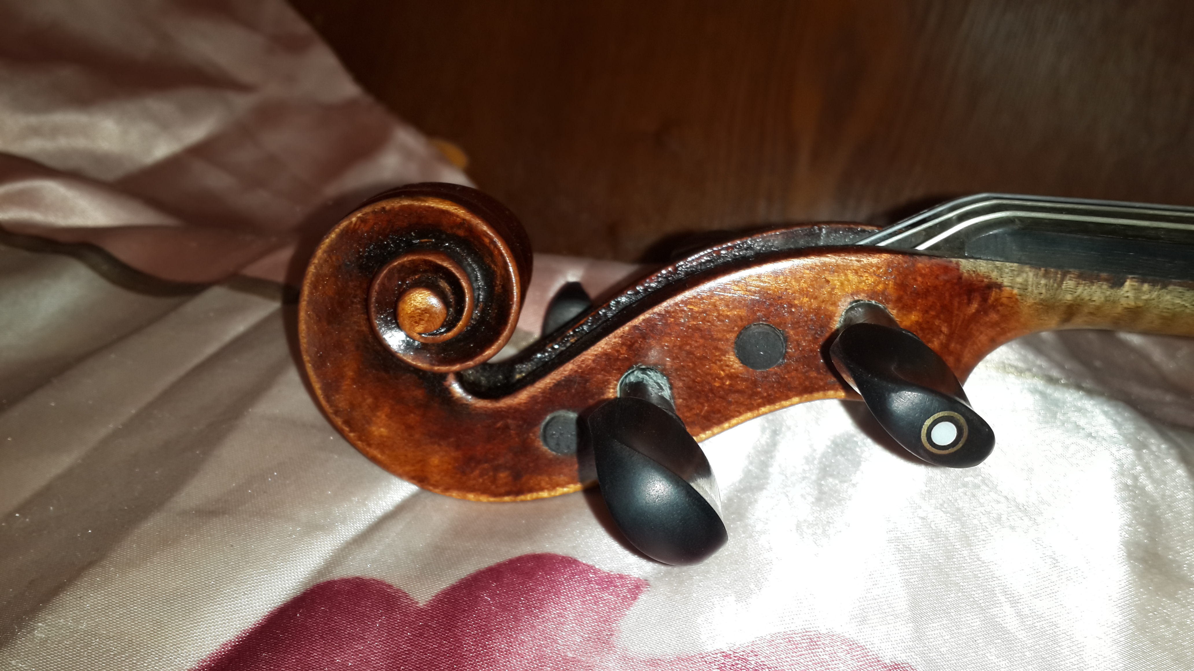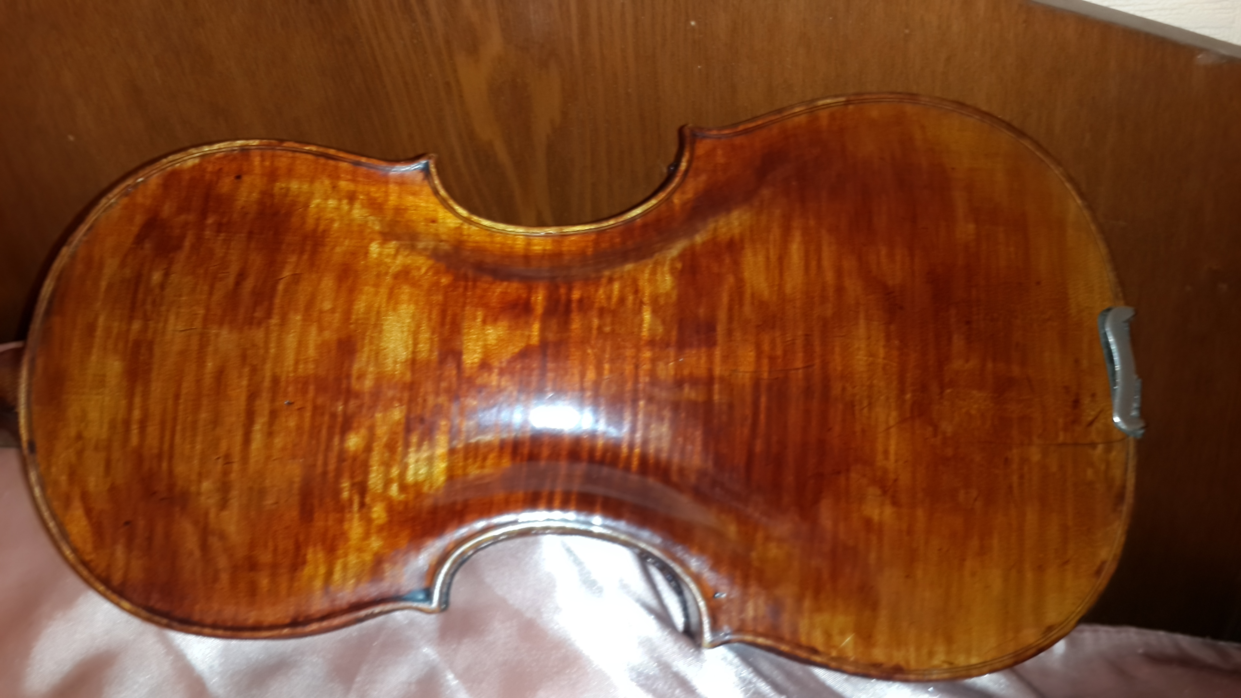Про скрипку: на оригинал не похоже, даже копией его назвать сложно. Но инструмент довольно добротный. Немец или австриец. Пусть по этим фото гадалки угадывают.