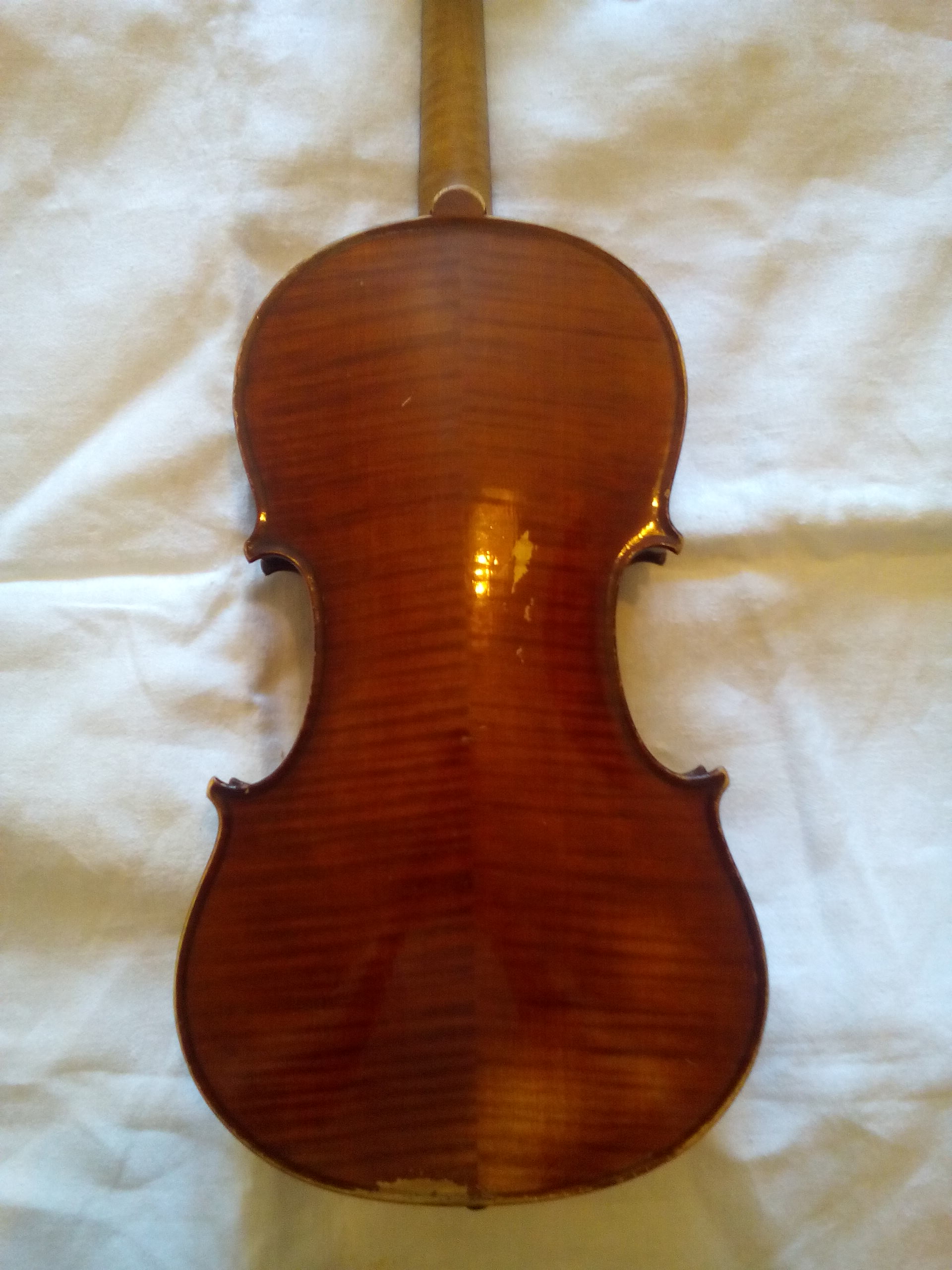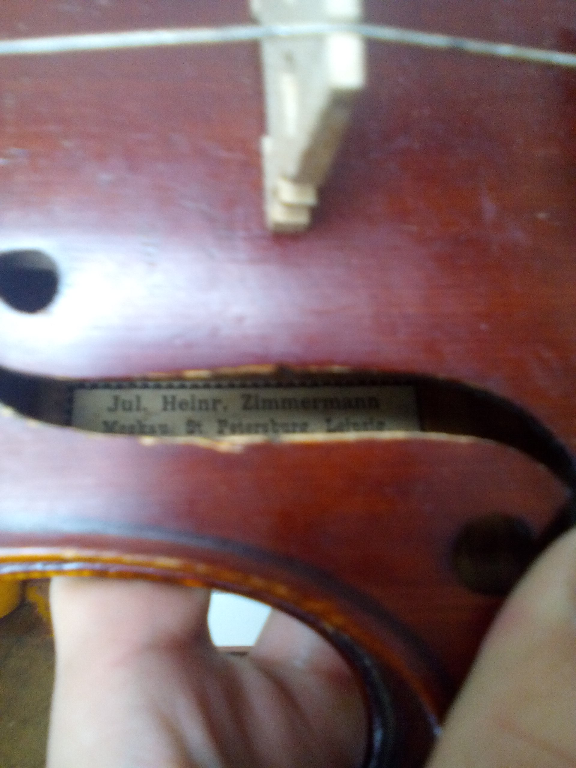Состояние приличное. Этикет соответствует скрипке. Конкретно эта модель довольно удачная, чего не могу сказать о Циммерманах с JHZ на этикете. Надо проверить корпус, сделать нормальную подставку-душку, поставить новый аккорд струн и послушать звук. С хорошим звуком дороже уйдет. Не особо эти скрипки ценятся, но в категории немецких мануфактурных инструментов считаются довольно качественными.