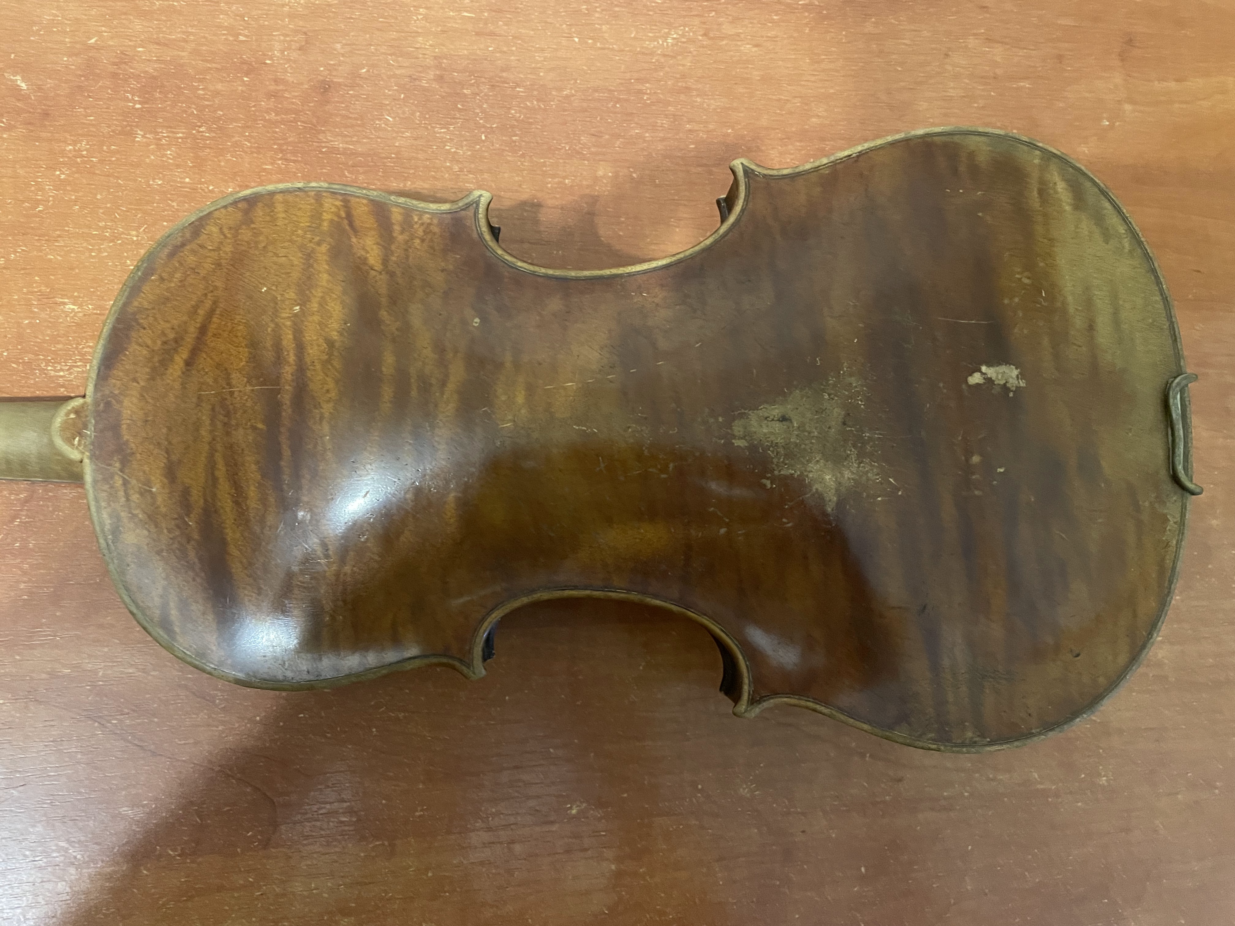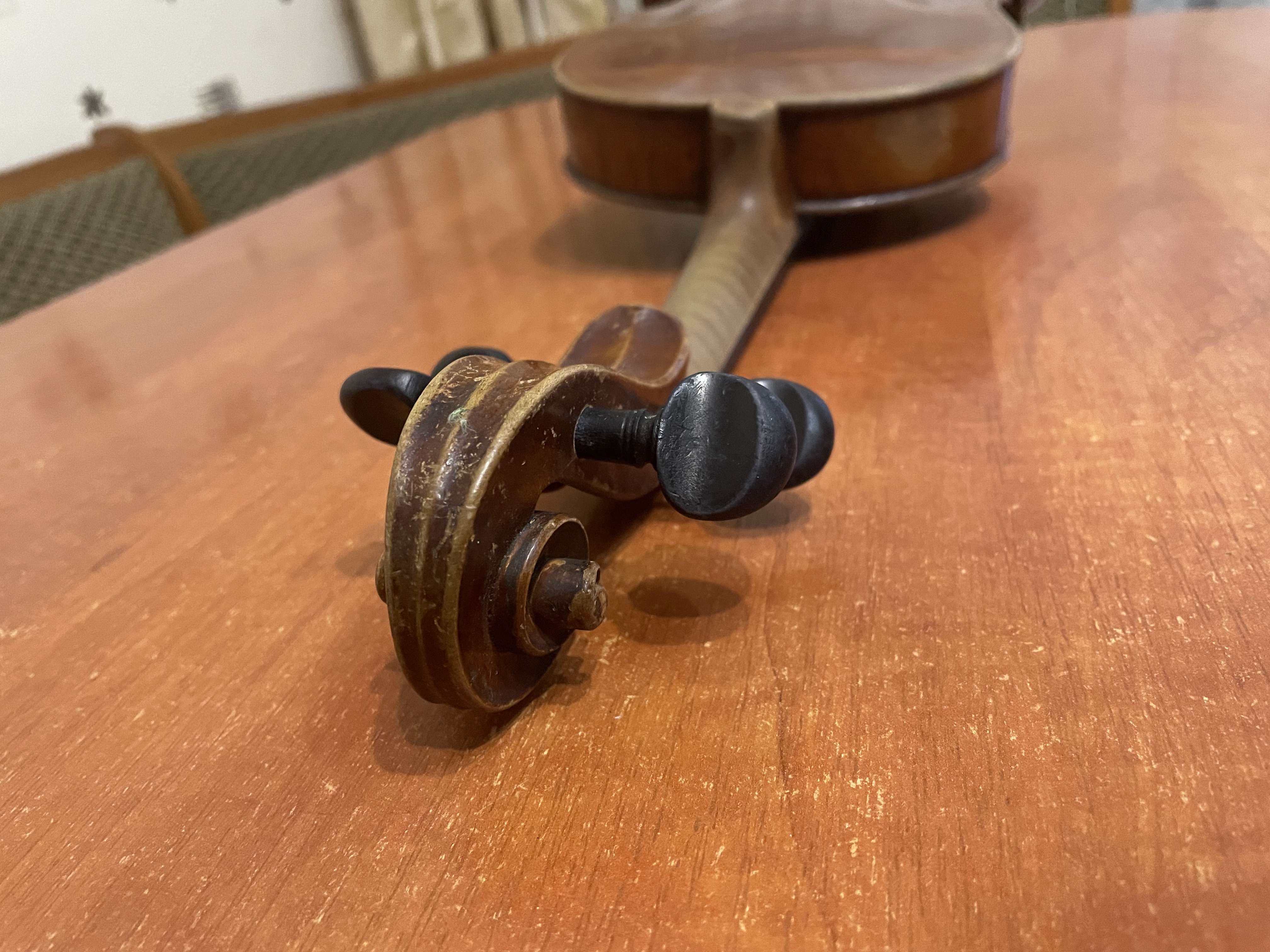 К сожалению предмет весьма заурядный. Обычная запущенная немецкая мануфактура. Да, она старая и нет, она от этого совершенно не становится ценной. Приведение в порядок может стоить дороже самой скрипки.
