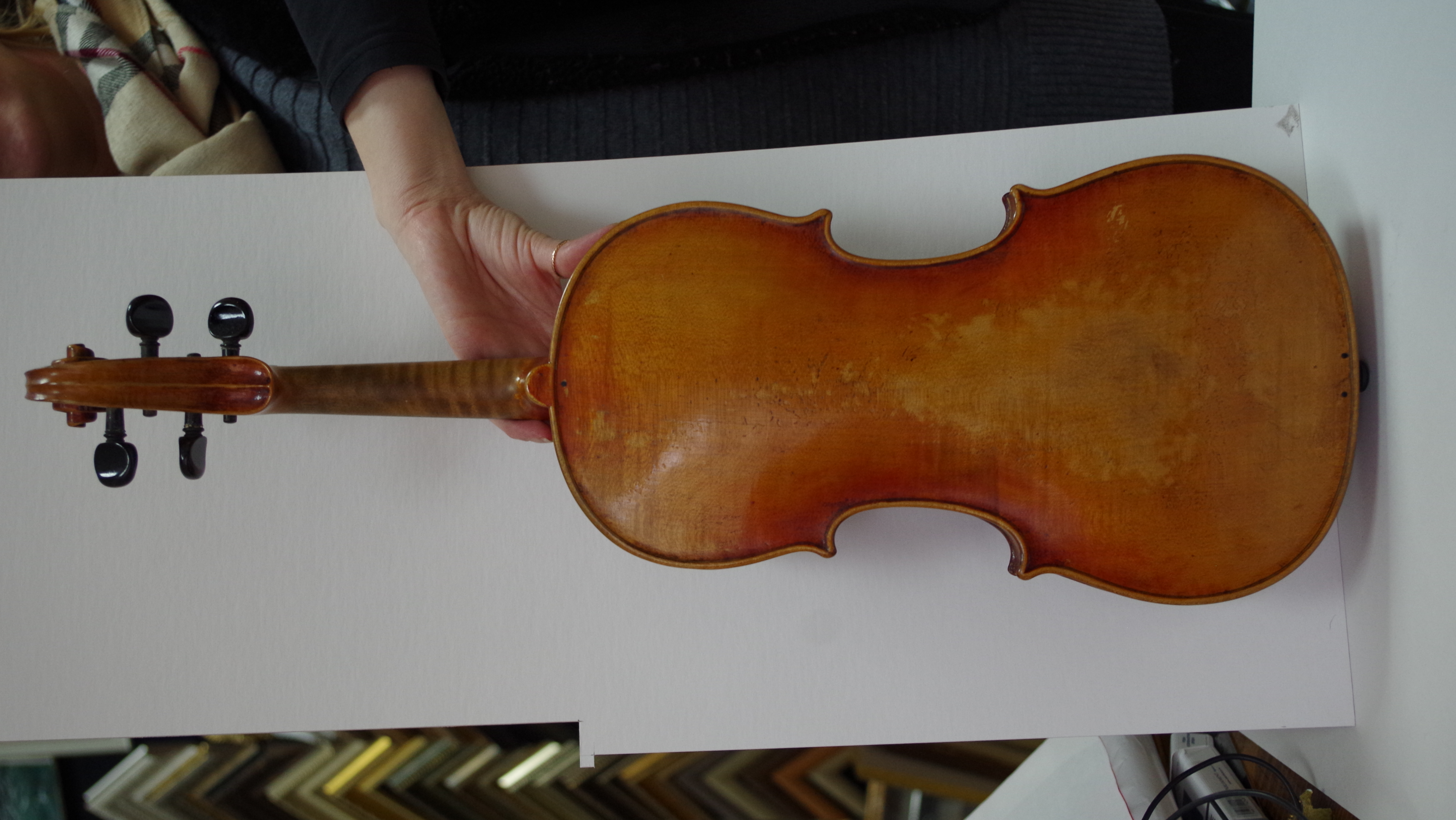 Врезка сделана, а не нарисована. Я по образованию. Художник. По профилю работы занимаюсь рамами, картинами. Зрительно могу отличить врезку от рисунка. Я правильно понимаю? Вы имеете ввиду соединение грифа и части с завитком? Если та часть, то воезка, я фото делала и обратила внимание на это. Фотографий много, я делала замеры. Есть фотографии на которые нанесены размеры. Точные. Основные. Я не знаю контрольных точек скрипки. Дед ничего не рассказал , нам пофиг было. Мы маленькие были. Вроде история вырисовывается, появления. Собираем по крупинкам. Скрипку пока никому не показывали , только этот форум.