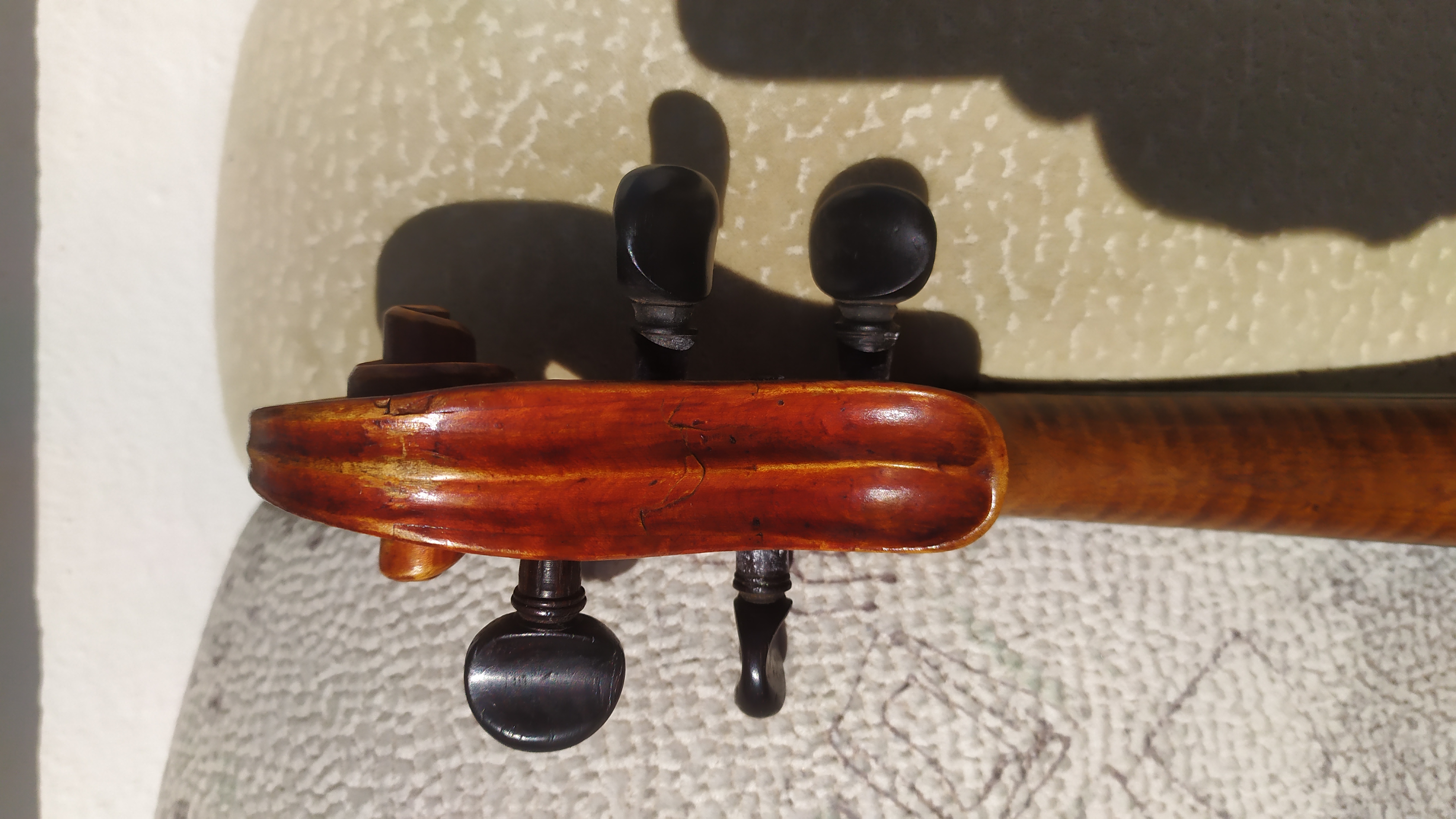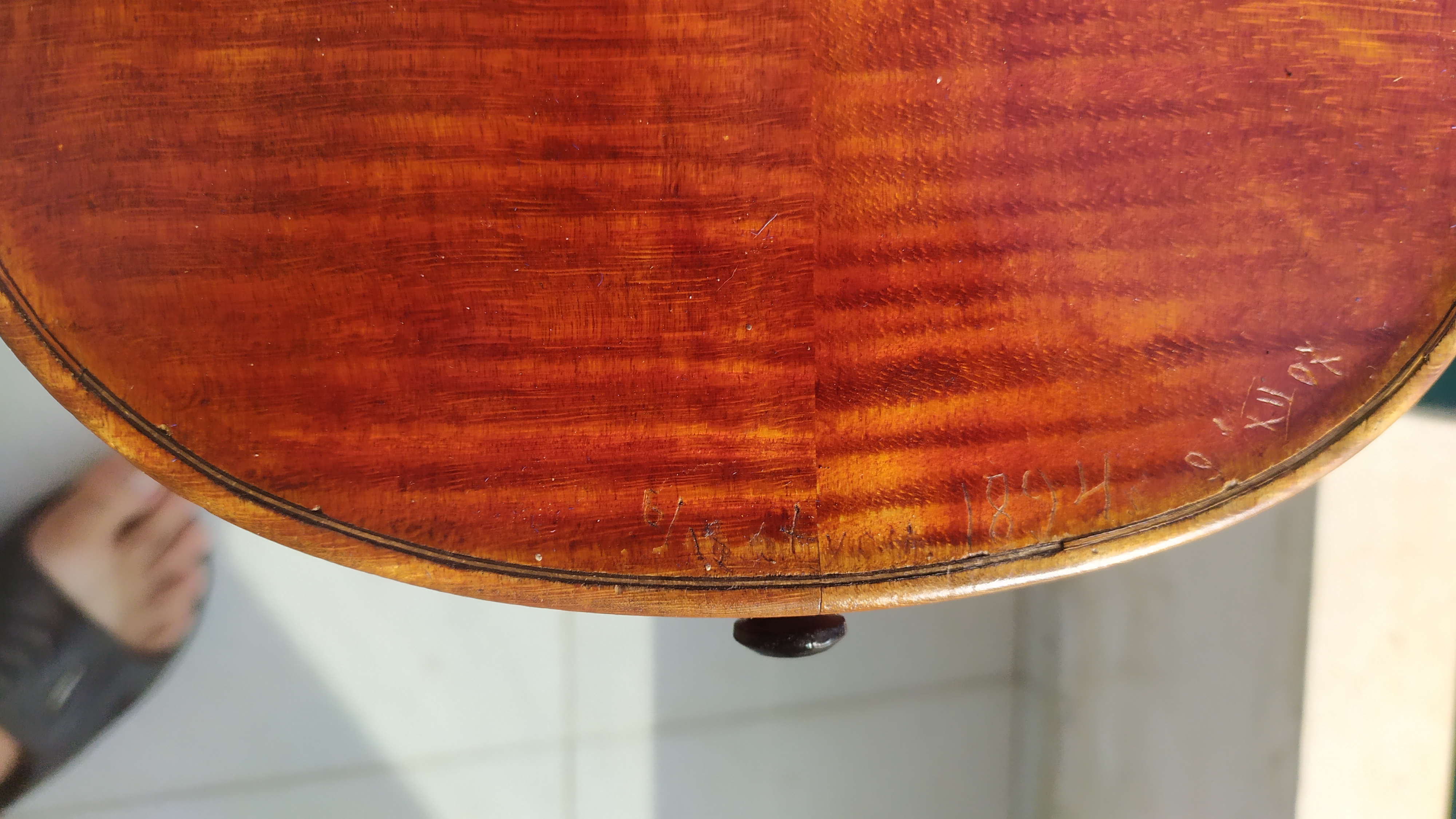 Добрый день. Кто может подсказать где примерно сделана скрипка? Может быть кто узнает подчерк чьей то школы? Купил, на ней нет клейма. Купил за очень приличный звук. На задней деке нацарапаны даты, все конца 18го века. Больше ничего нет, ни этикетки ни клейма, хотя что то просматривается на задней деке в районе подгрифника, но совсем не разборчиво.