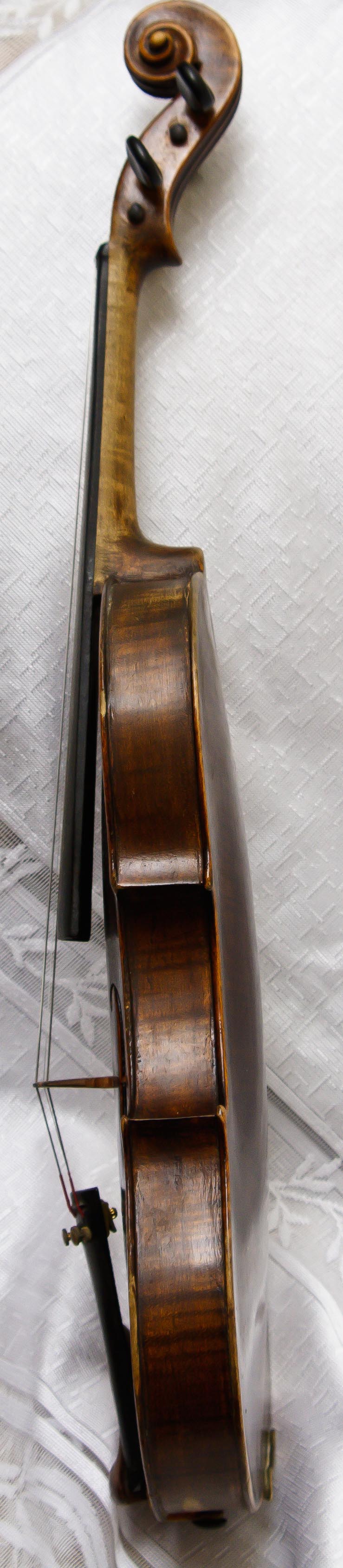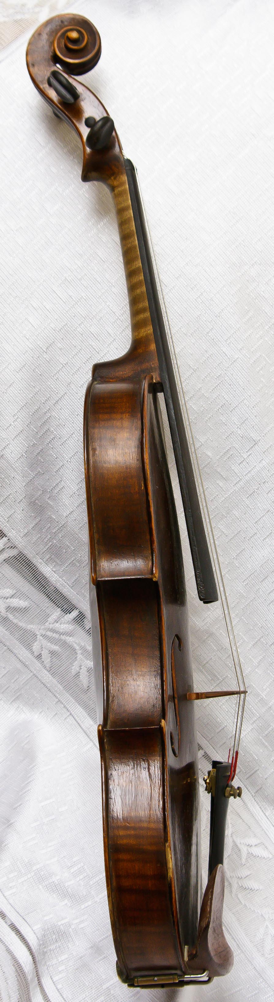 Склоняюсь к мнению, что это не очень старая немецкая мануфактура. Спасибо за качество фотографий, удалось рассмотреть детали которые обычно не видны на любительских снимках. Трещины на верхней деке не сведены, а замазаны клеем и им же зашпаклеваны. Надо бы переклеить, это держаться не будет. Нижнюю деку как будто бы бейцовали, возможно сразу же при изготовлении чтоб выглядела старше. По поводу лака проблем не вижу, подкрасить, почистить, располировать. Клоц нижний меняли (там где пуговица)? Не припомните?
