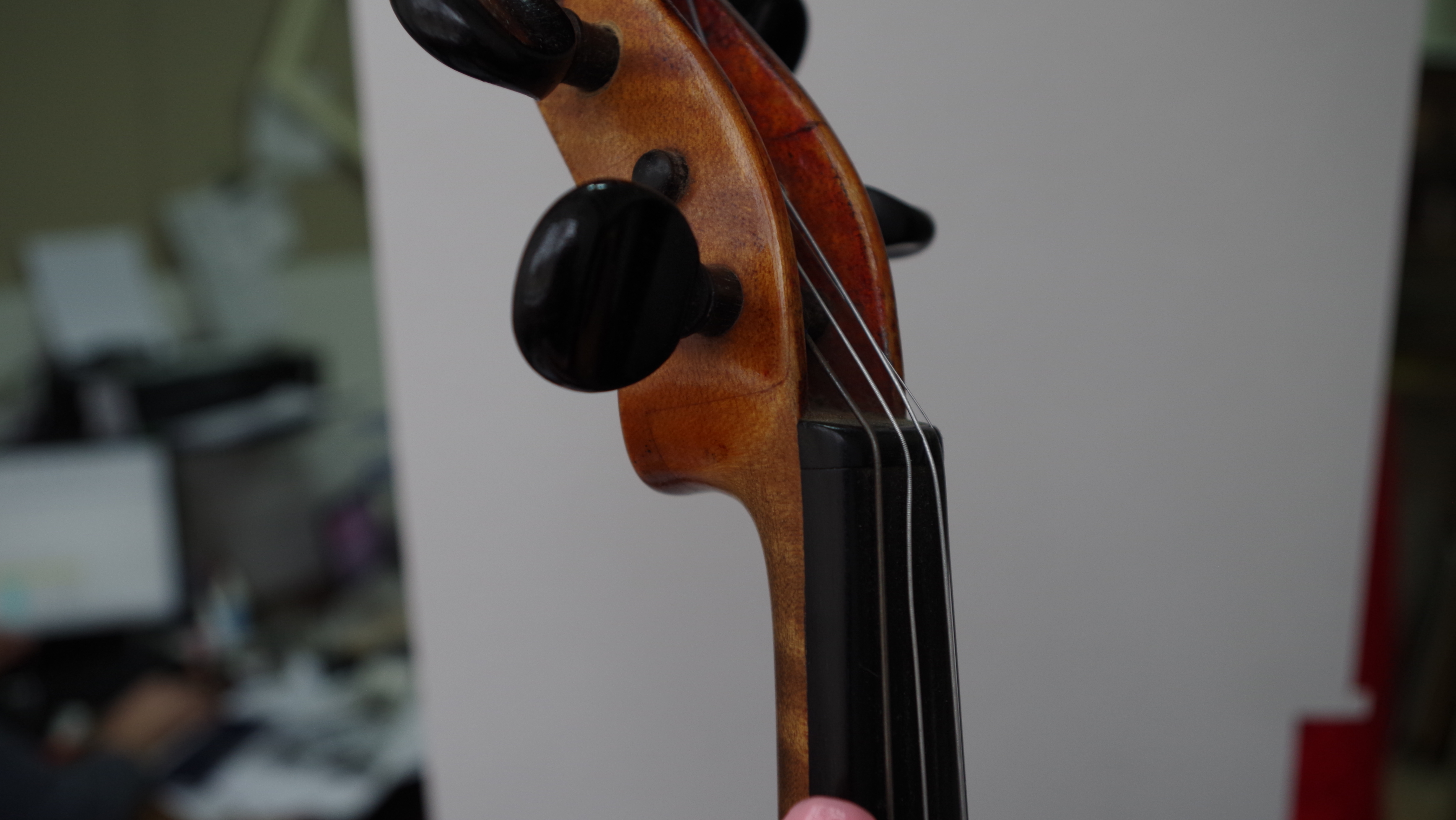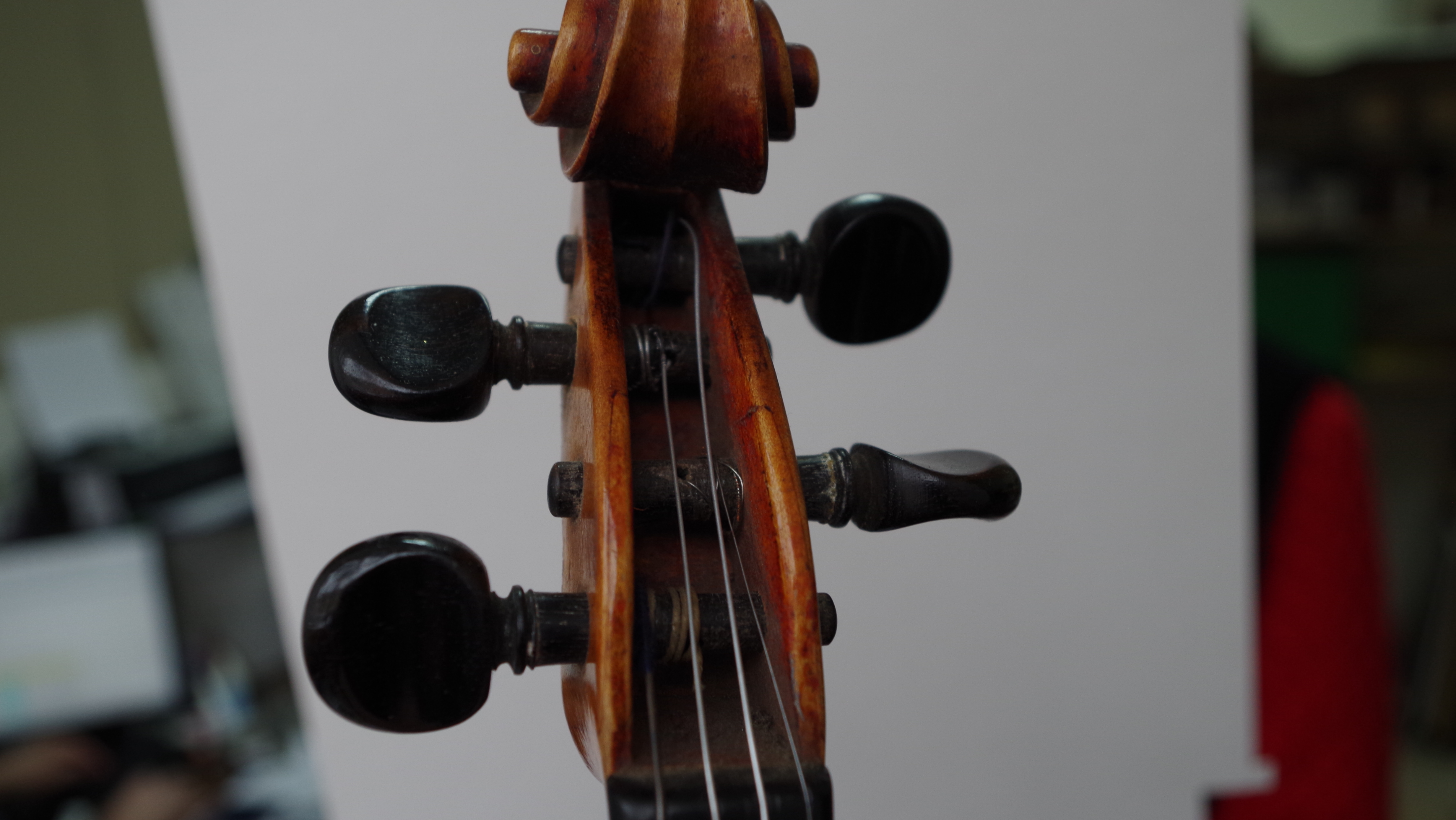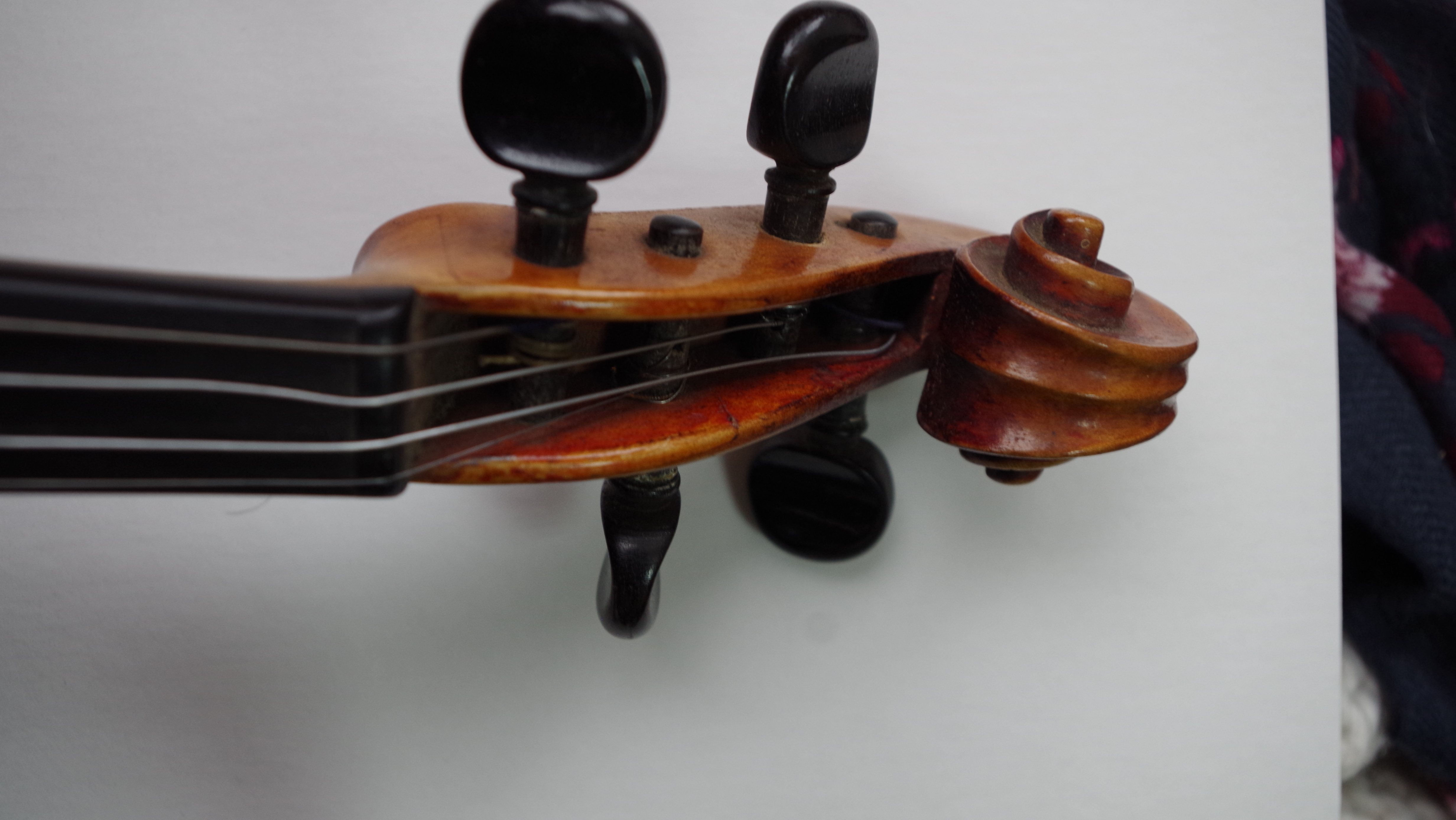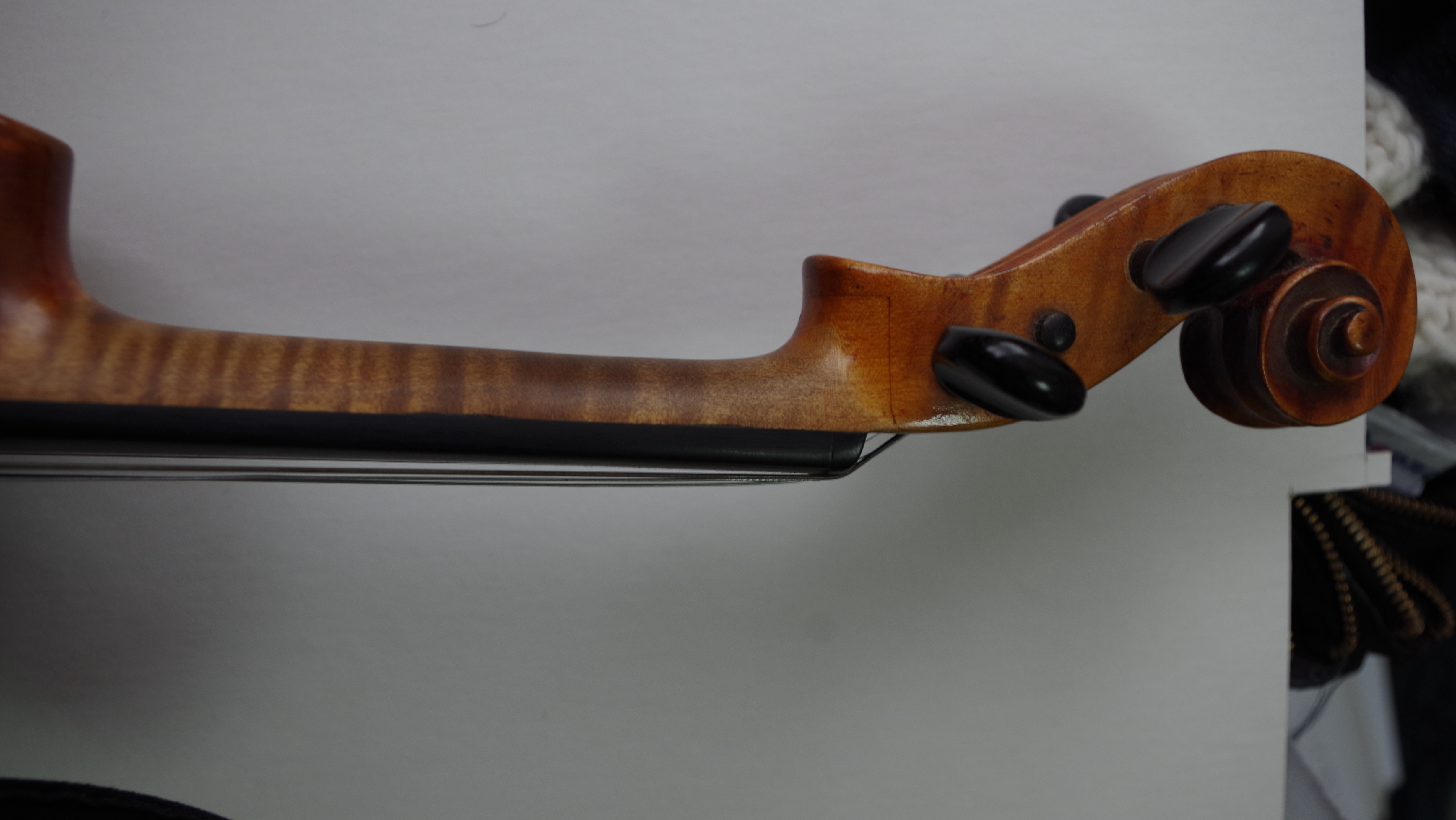 Это не гвоздь (черная точка) А просто что-то врезано. Такого цвета. Это и есть гвоздь, из черного дерева. Цитата: я даже никогда не видела таких тонких соединений, проживших столь долго не рассохшись. Темболее испытывающих постоянный резонанс. Потому что по моему мнению, сложившемуся по этим фото, головка не врезана, а на куске цельного дерева, аккуратненько, тонким инструментом, имитировали врезку. Фото которые на свету, получились гораздо лучше) Скрипка интересная!