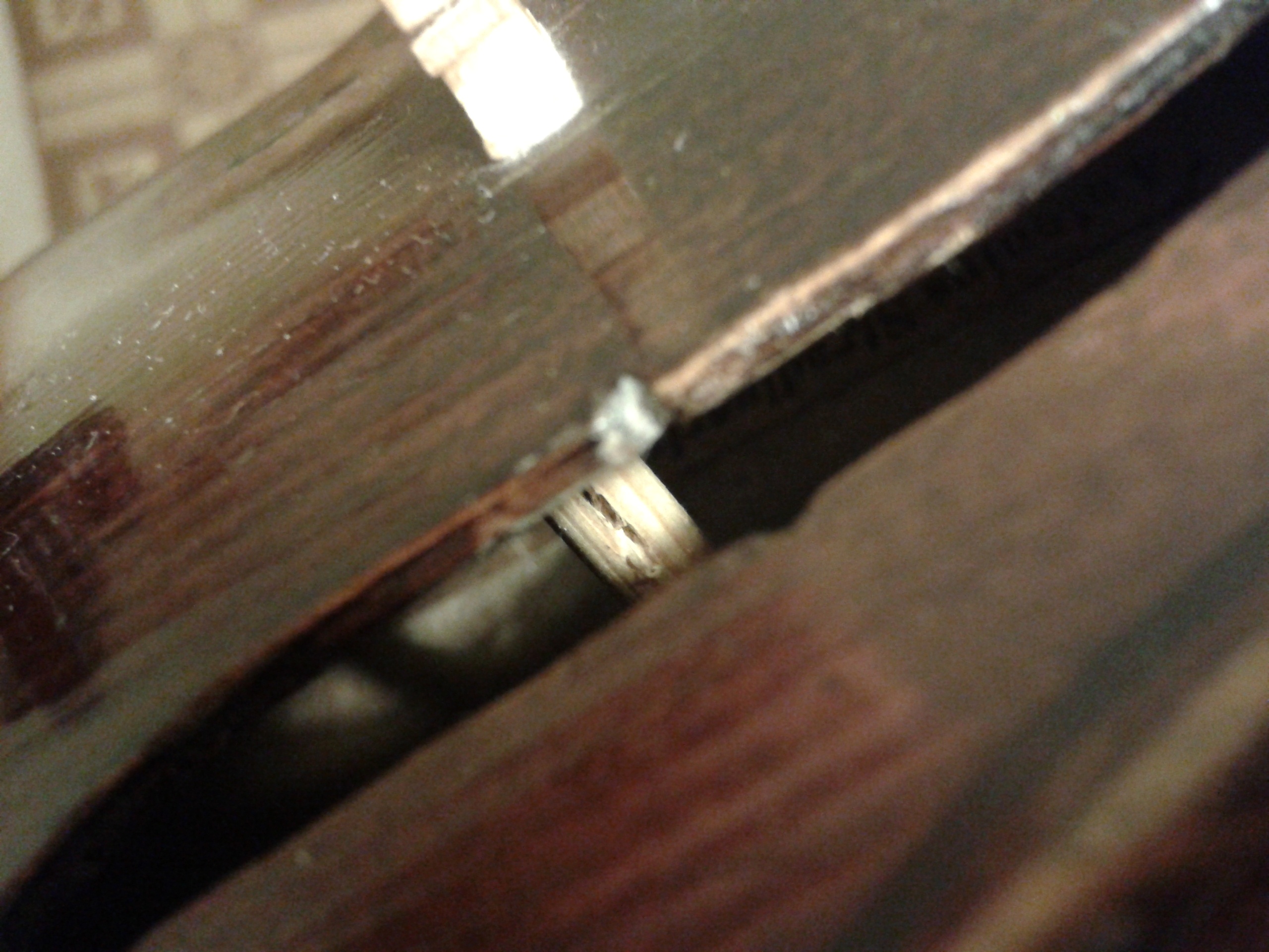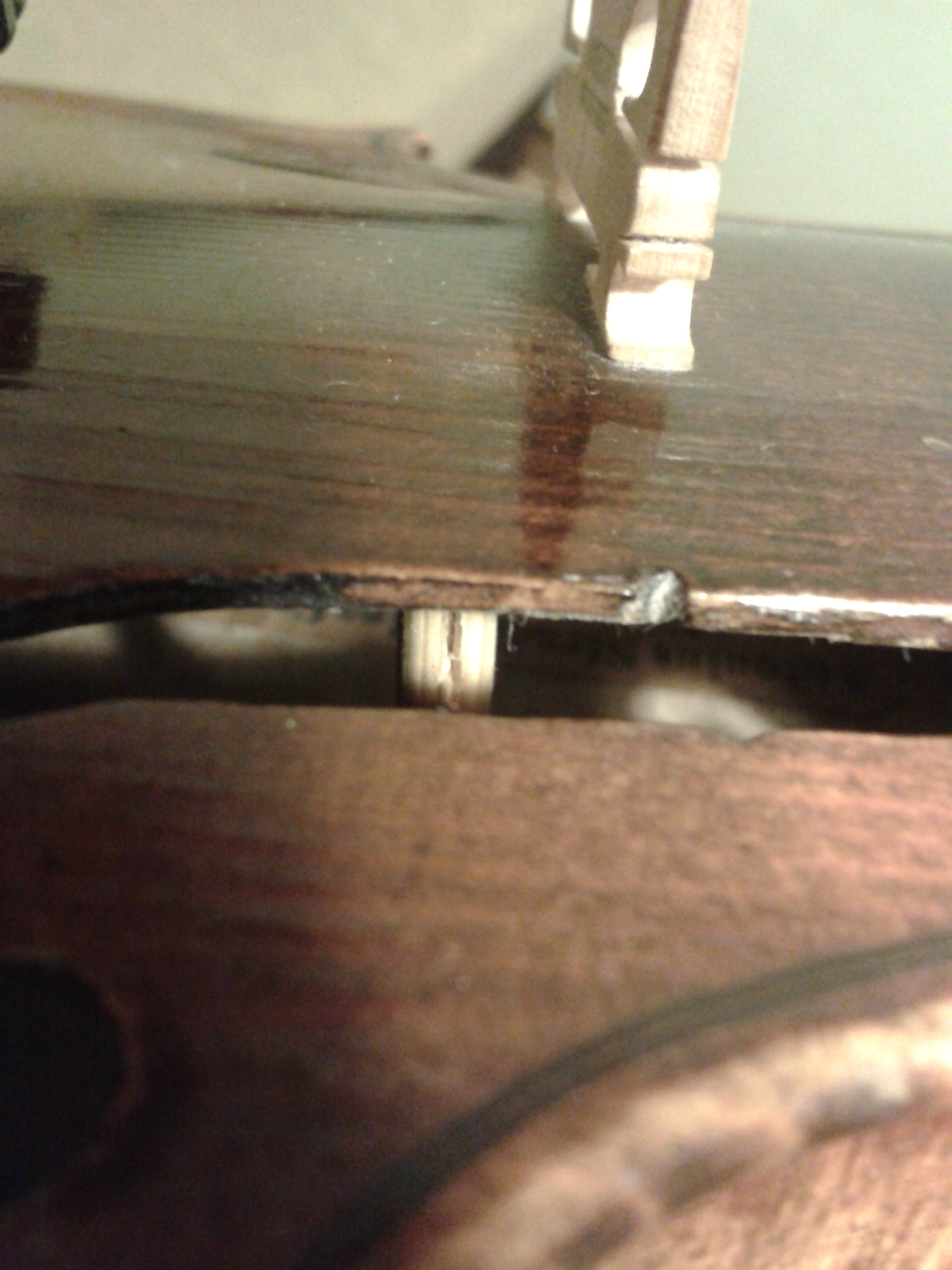 Сегодня решила заглянуть внутрь инструмента, чтобы взглянуть на душку, так, на всякий случай и обнаружила серьёзное повреждение! Хотела узнать на сколько это страшно? Душка несёт большую ответственность за звук, возможно это она и создаёт призвук?