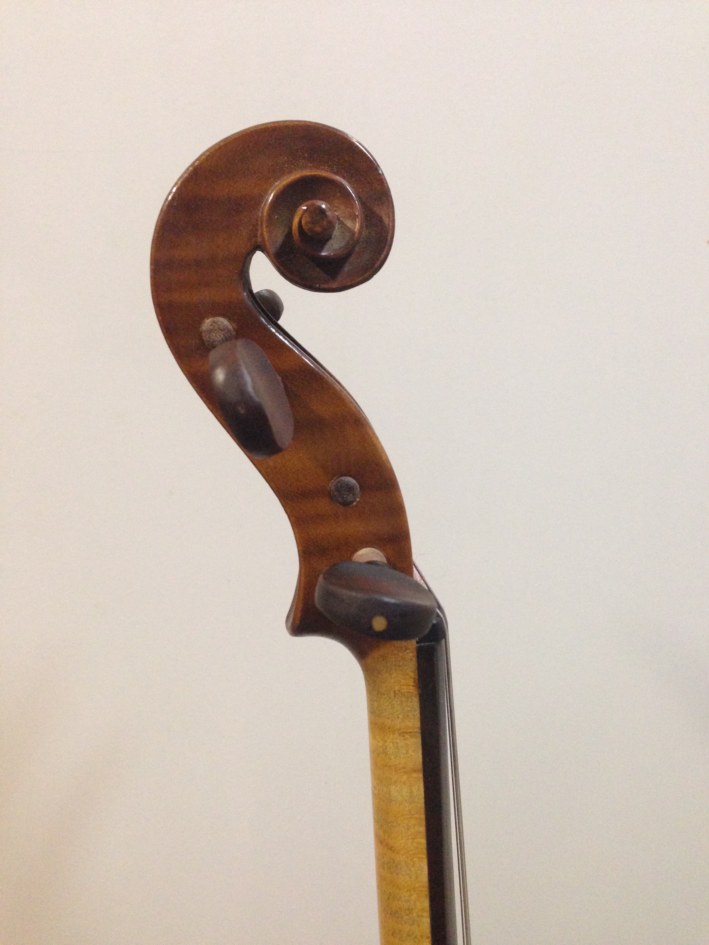 мне кажется,что она точно мастеровая. На мануфактурах копировали известных мастеров-Страдивари,Гварнери ,Маджини,Штайнер. Эта скрипка ближе к немцам-чехам по форме эфов и завитка(прослеживается что-то от семьи Клоц в этой форме). Ещё верхняя дека очень резко подымается сразу от края,а нижняя плавно(дель Джезу так делал, но не так утрированно). О лаке по этим фото трудно что-то сказать. Немец-чех середины 20 в., мастер.