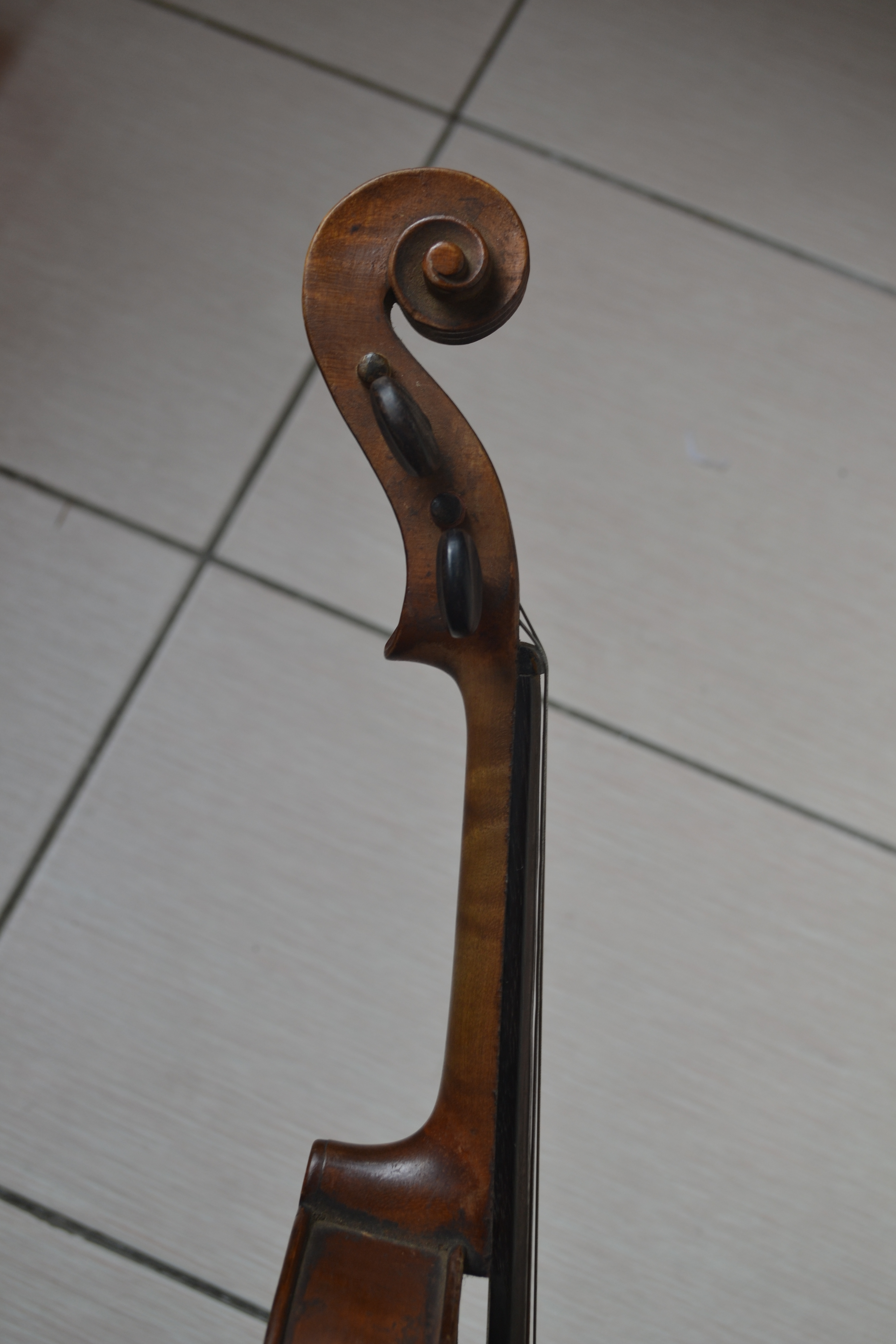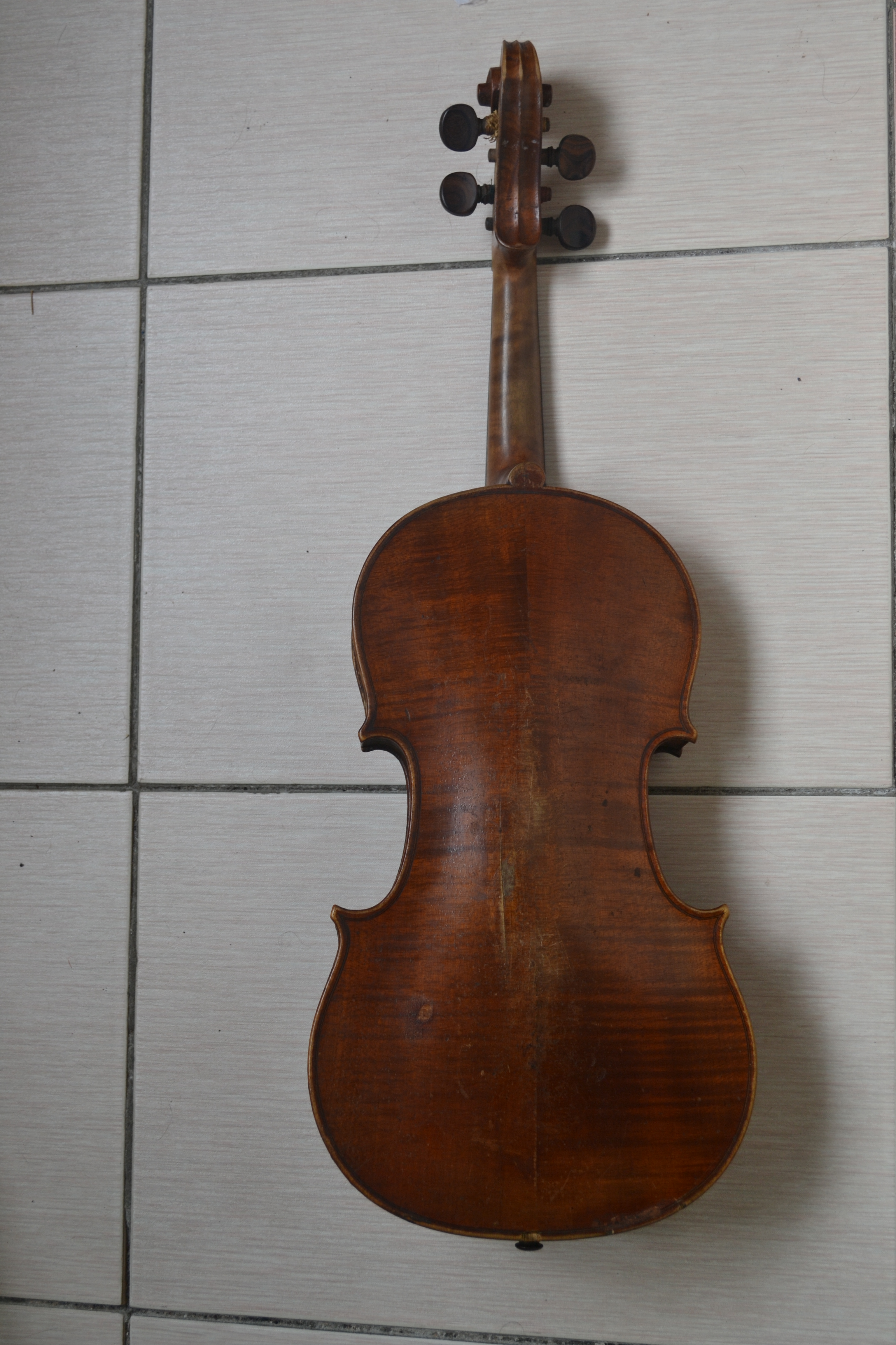По моему мнению, происхождение Чешское, начало 19 века, скрипка работы мастера, но либо ученика подмастерья, либо начинающие работы какого-то чешского мастера, так как по столярной работе. есть неаккуратные моменты. Из за практически полной утраты лака на деке, стоимость ее снижается почти полностью. Перелакировать - не будет ее первоначальной ценности, оставить как есть, нельзя. Поэтому, как повезет по деньгам. Если уж сильно звучащая(возможно из за неплохого дерева), то при личной встрече с музыкантом, который не побоится потерять звук после ремонта, 500 - 1000 у.е.(опять повторюсь, если она уж очень сильно звучащая) А так, реально, чтобы забрали - сотня несколько. Мое мнение может быть неточным, либо ошибочным.