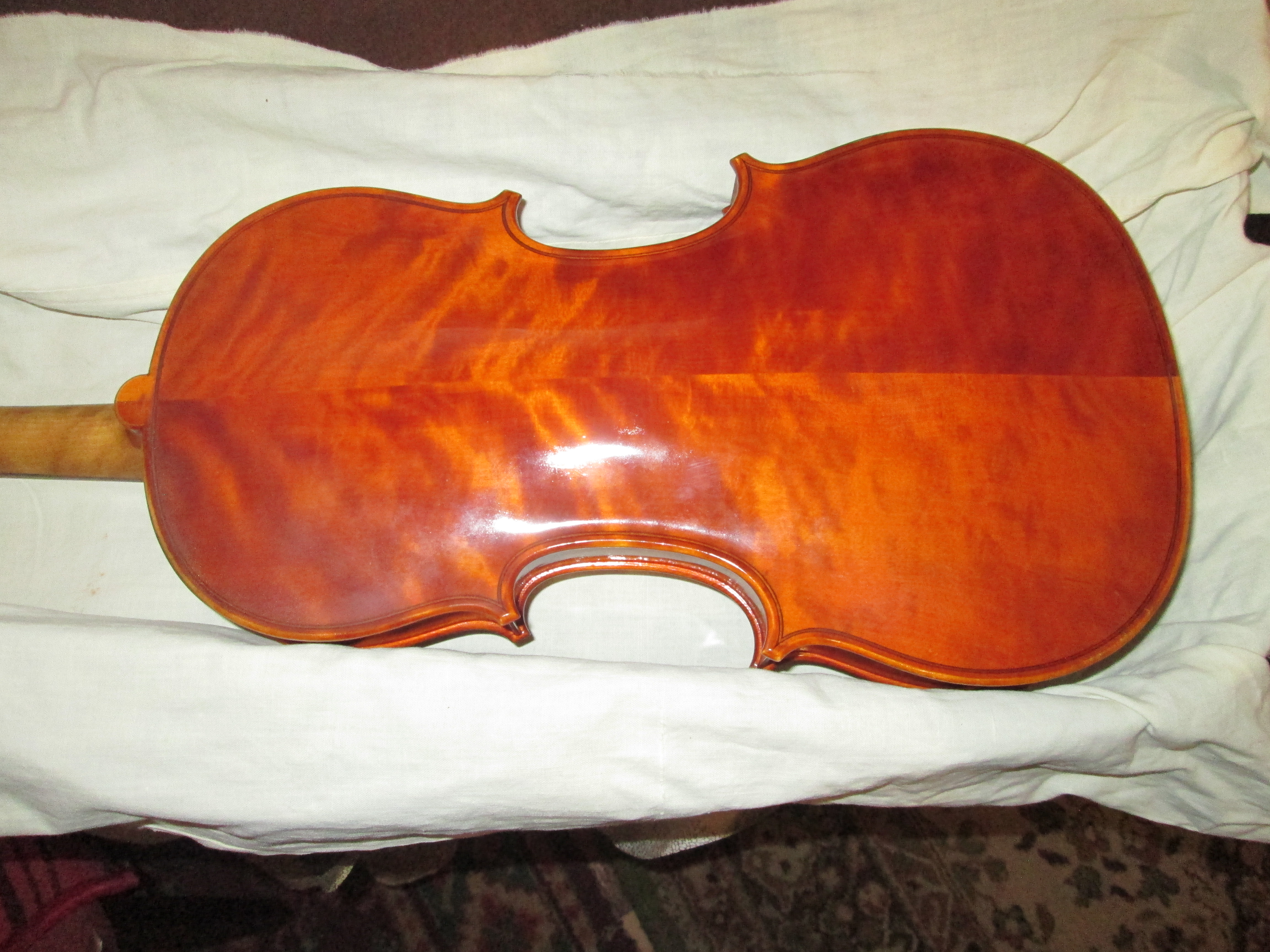 Согласен с предыдущим комментарием дерево не европейское ,есть сейчас современные скрипки птичий глаз - китайцы выпускают . Но такую структуру дерева как у вас, вижу в первый раз. Скрипка мастеровая это видно.Но как она звучит? Мой совет дайте ее обиграть виртуозу и сделайте запись . Без звучания никто не рискнет приобретать ее и не дадут вам желаемой цены.