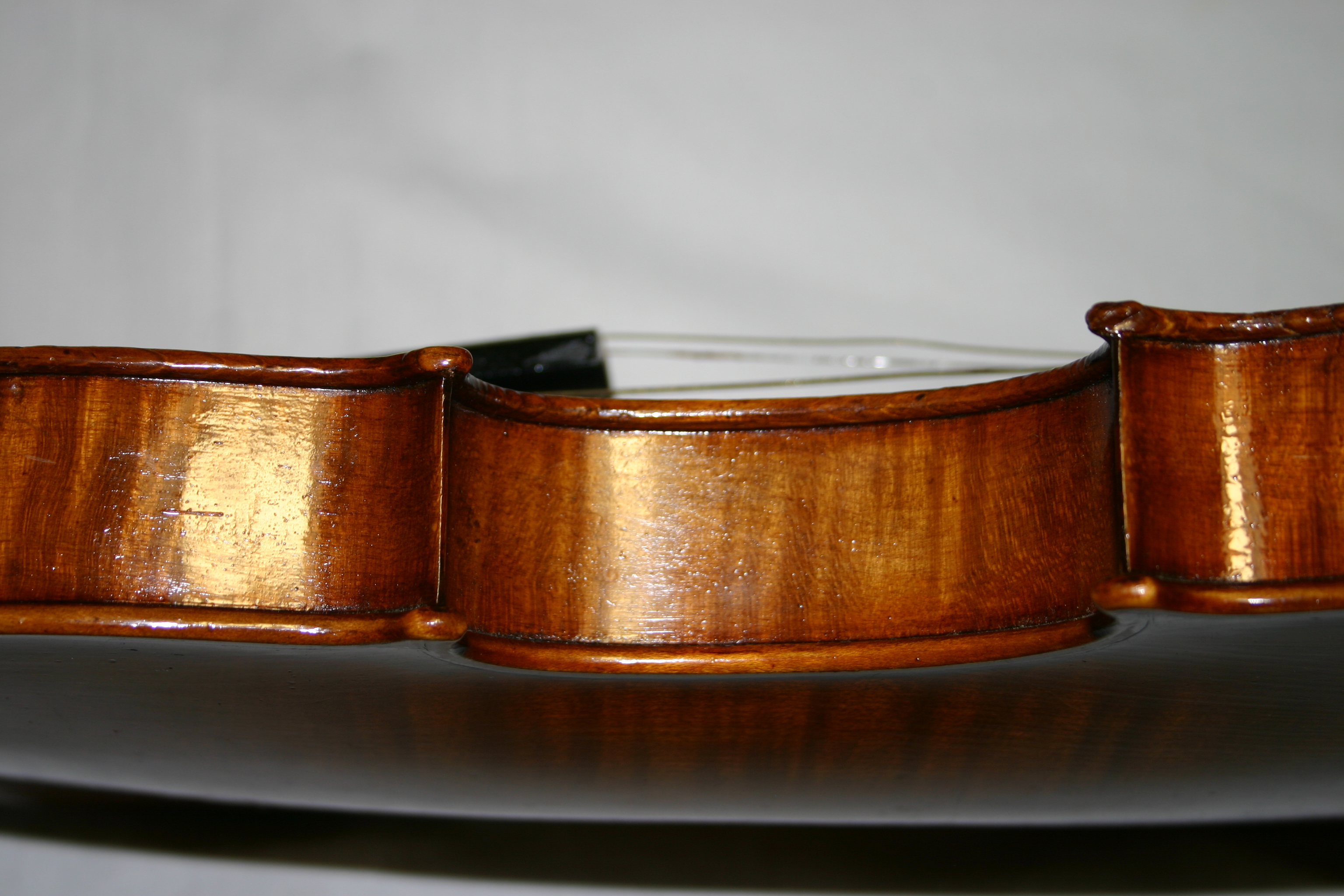 Для начала надо убедиться, что скрипка полного размера. Длина корпуса без пятки 355-360 мм. Если скрипка детского размера, то это влияет на цену.