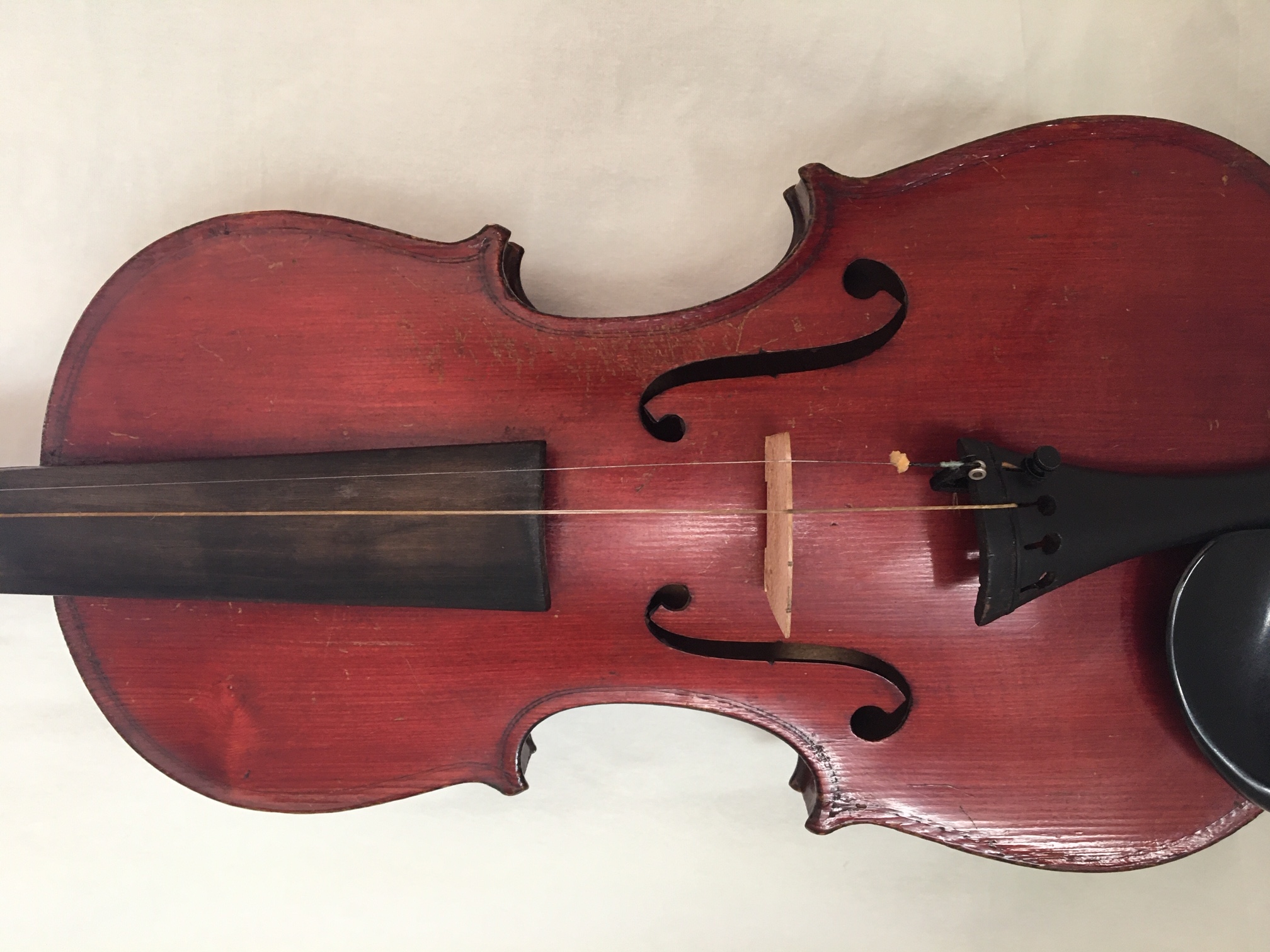 У скрипки вроде все на месте, никаких трещин и расслоений.