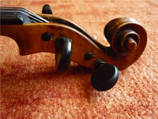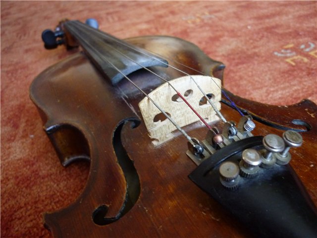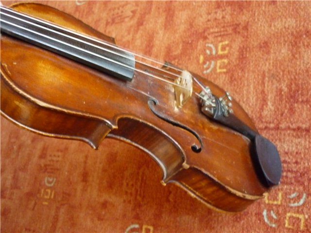 Ну скрипка вроде мастеровая, но совсем не высокого уровня. Присутствуют трещины. Заклеены. Вроде бы.