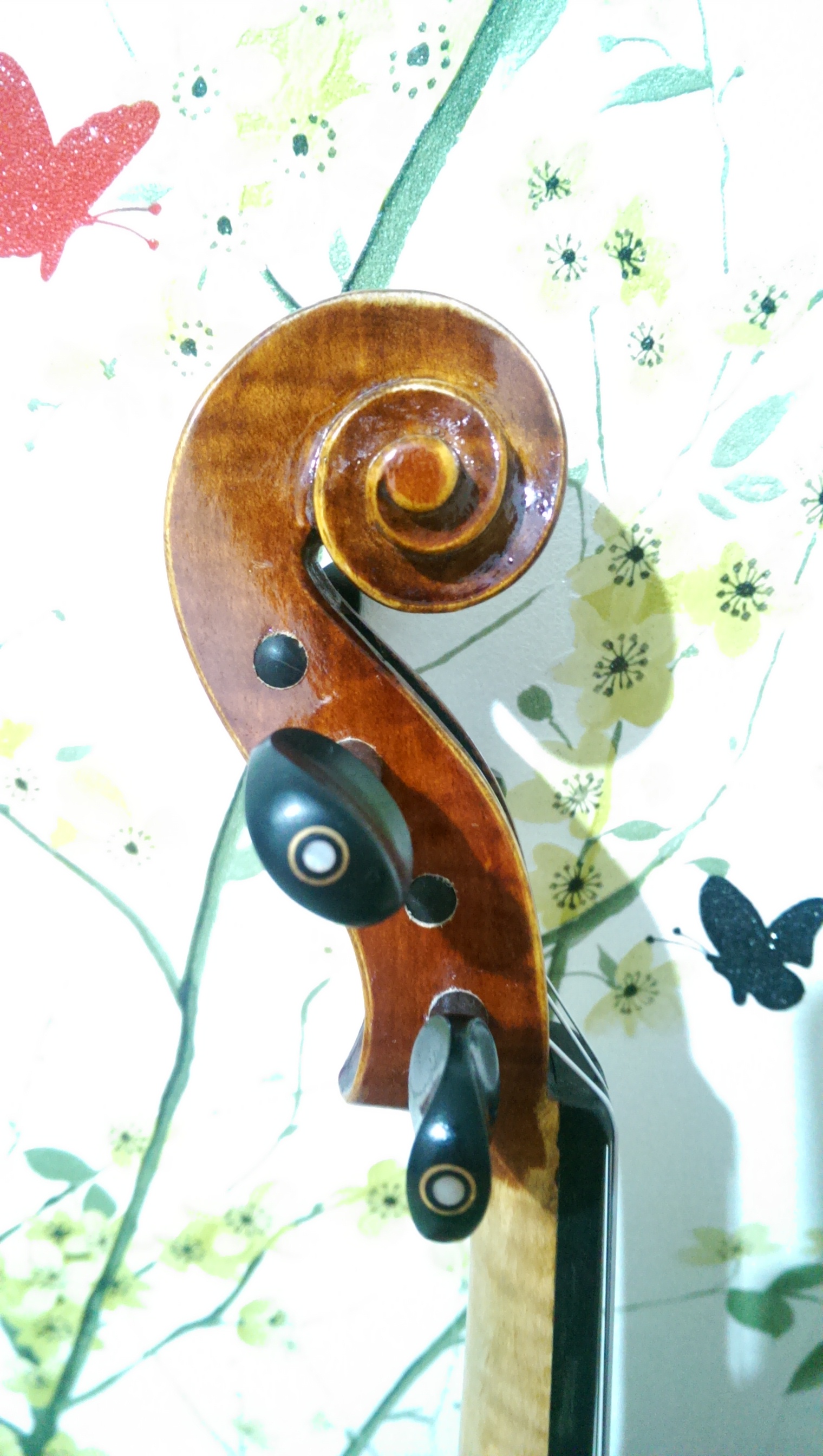 Я думаю скрипка действительно мастеровая , нижняя дека клееная с половинок -дерево европейское. Колки хорошие и недешевые. Подгифник из дорогих.Струны тоже неплохие -черные -скорее Доминант. Значит тот кто ее делал не поскупился. Лак в хорошем состоянии.Инструменту лет 30 . Только прослушивание определит ее цену. Я думаю продавец запросит минимум 300 уе . Скрипку любили и вкладывались-значит она того стоила. Тюнинг скрипки отличный. Хороший выбор для ученика музыкальной школы.Если бы инструмент был одобрен после прослушивания скрипачами на отлично и 600-700 не жалко.Еще подкупает ее классический оркестровый вид - без всяких тирольских примочек .