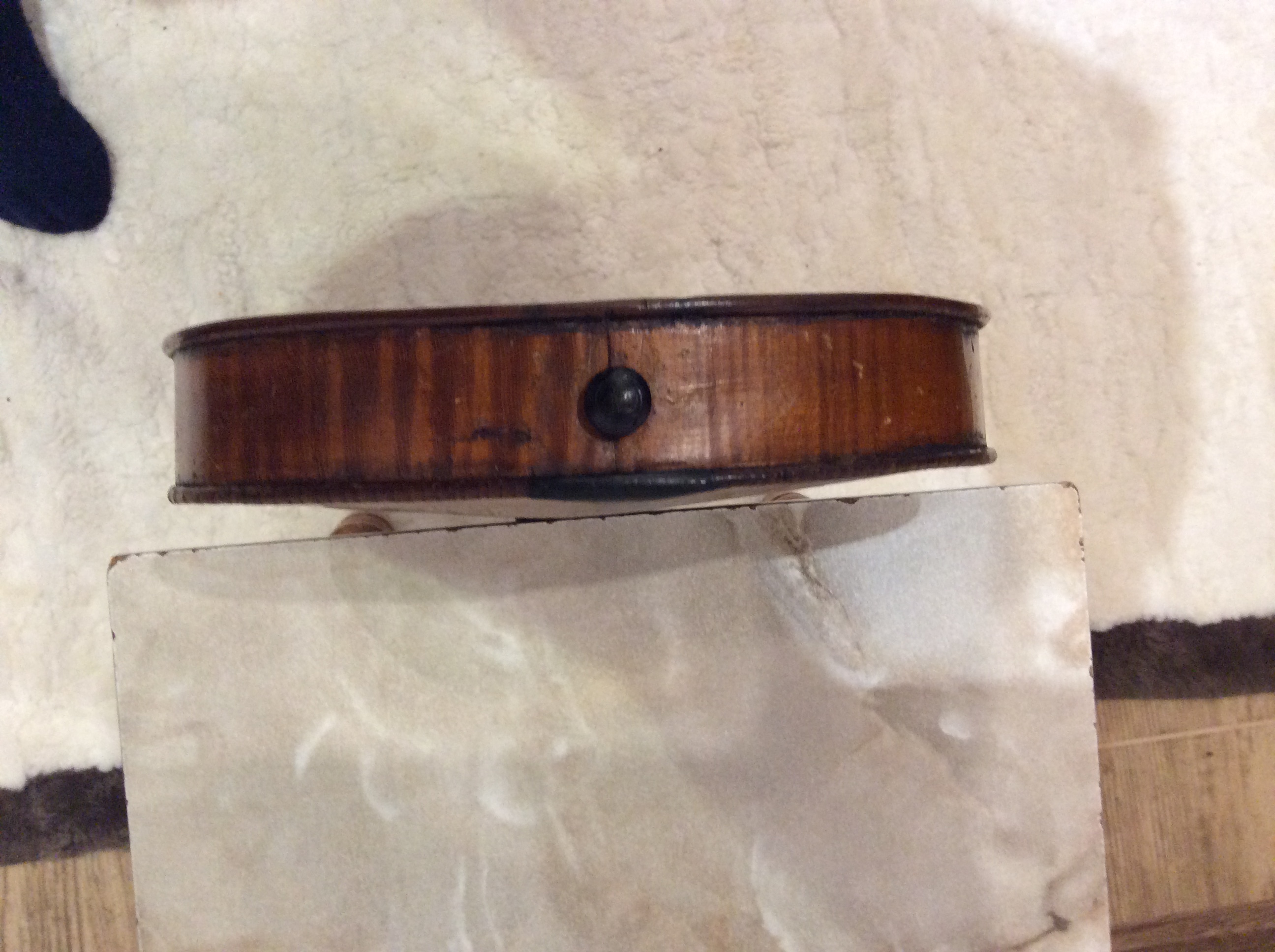 Скрипка довольно таки старая, 19 век. Примерно из тех мест родом откуда и привезена. Внутри обычно эти инструменты очень грубо сделаны. Долбленые пружины, глубокие следы от резца на верхней деке изнутри, топорные клоцы и т.д. Лак родной. С эфами не совсем понятная ситуация. Как будто бы разрезали потом, подравнивали. А может и изначально так были вырезаны, надо живьем смотреть. Подозрительные отверстия круглой формы на деках. Возможно шашель, не буду утверждать. В общем инструмент не ценный. Привести в порядок можно, но такие скрипки требуют полной переделки.