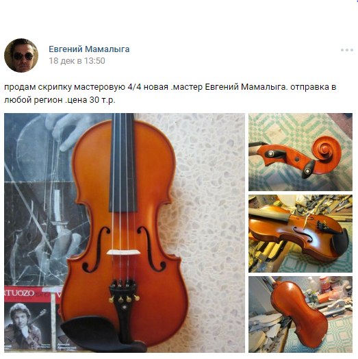 Конечно скрипка не мастеровая. Как минимум по цене. А как максимум - по виду. Может и Китай, но вполне приличный как для китая и в сравнении с тем китаем, который у нас обычно продают в магазинах. Спасибо, приму во внимание.