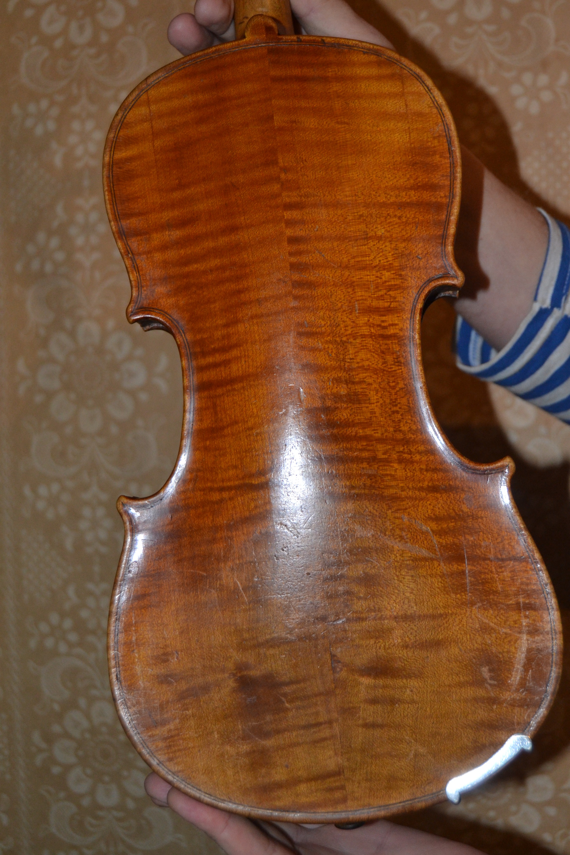 Уважаемые профессионалы! Пожалуйста, выскажите свое мнение о состоянии скрипки и, по возможности, вероятные варианты ее происхождения. Звучит скрипочка очень хорошо. Нужна для обучения ребенка в лицее при консерватории, поэтому требования к звуку весьма высокие. Но настораживает состояние верхней деки, Продавец утверждает, что много лет назад привезли "вроде бы из Италии", ремонтов на его памяти не было.