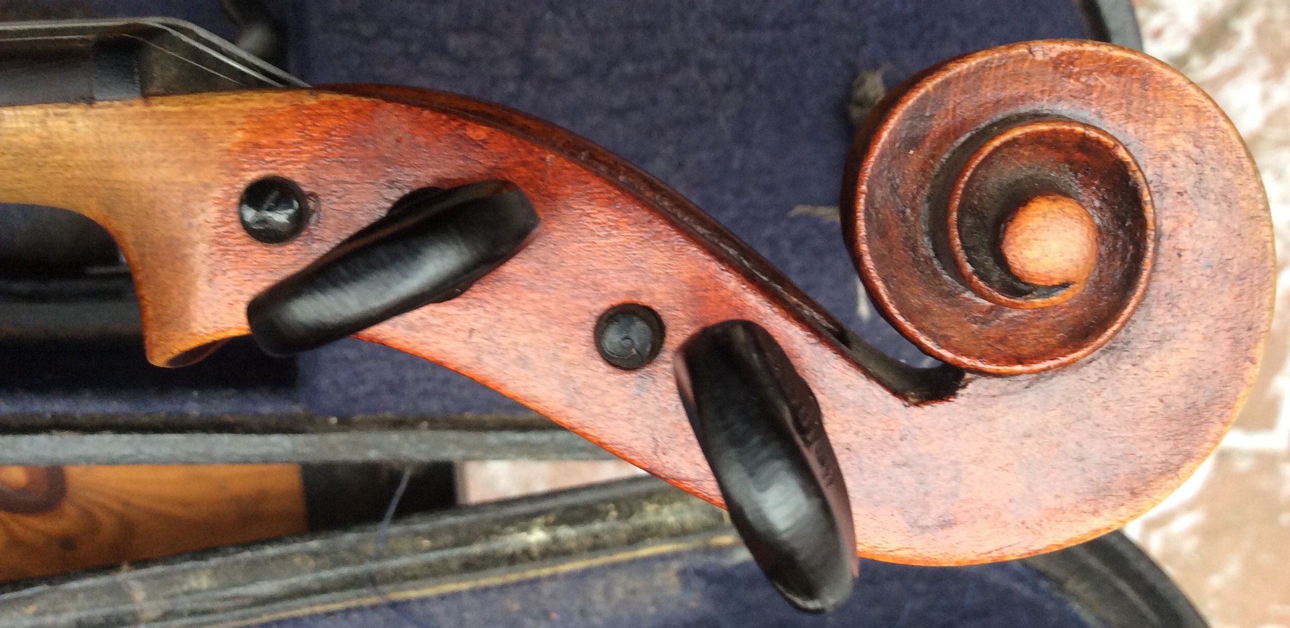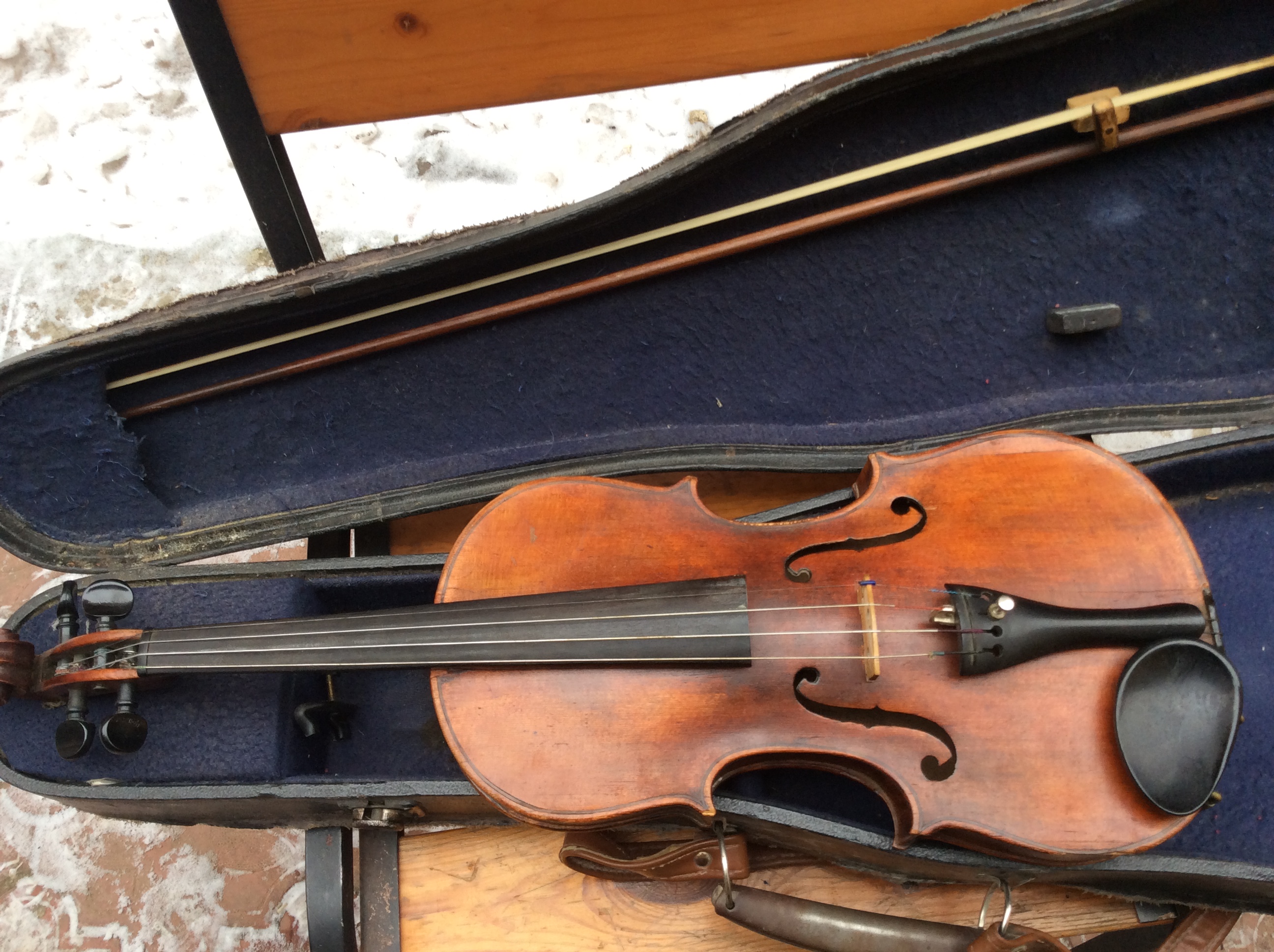 И это не то состояние, чтоб показывать профессиональному музыканту, которого такая скрипка может заинтересовать только в роли второго-запасного инструмента. А любитель дорого не купит. Советская пластмассова фурнитура сильно дешевит и выдает небрежное отношение к инструменту прежнего владельца. Как то так.