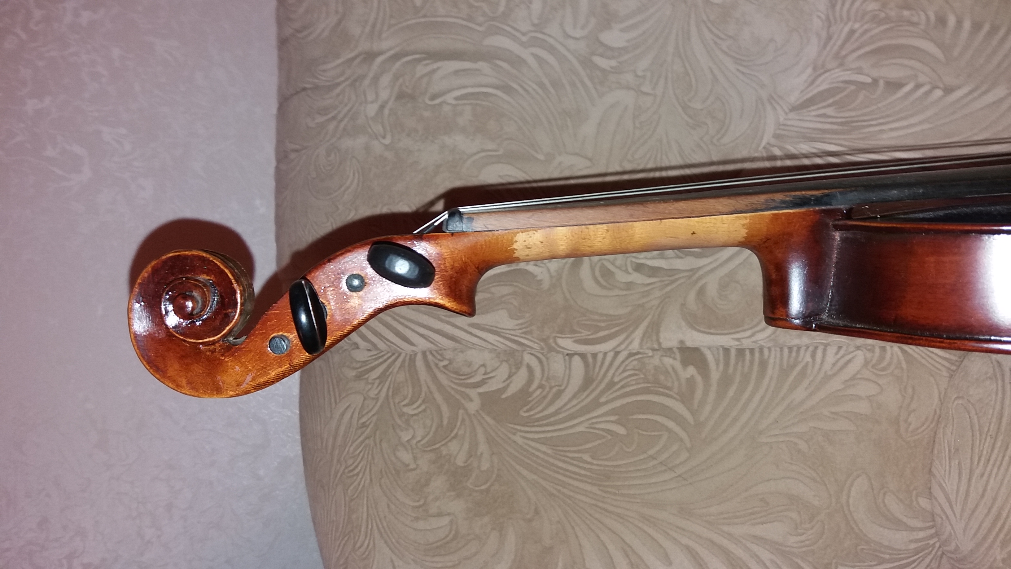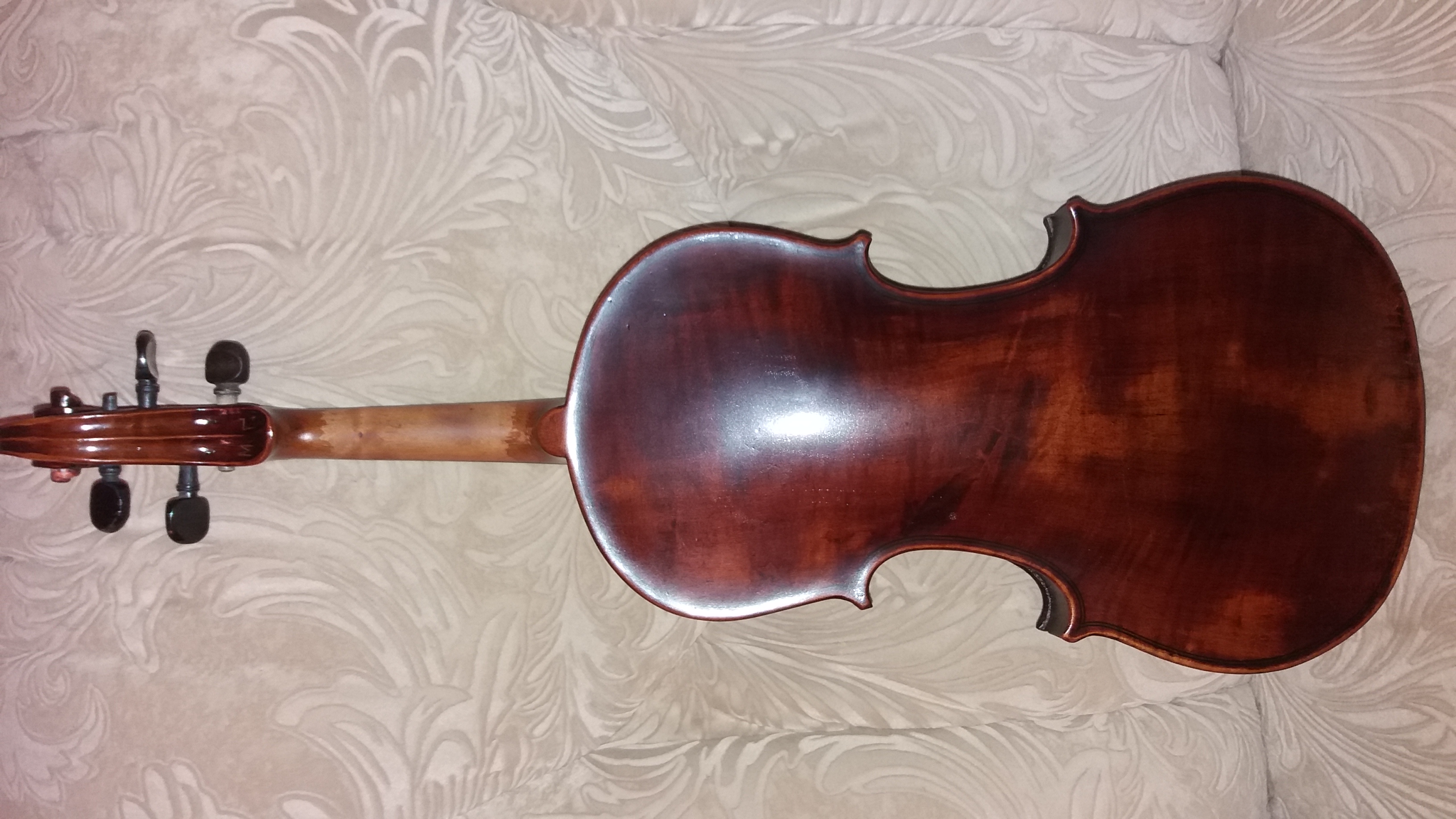 Здравствуйте. Вот попалась мне не дорогая скрипка. По звучанию очень неплохая. Лучше чем я выставляла viewtopic.php?f=18&t=774 в этой теме. Но у нее нет усов. Сзади просто нарисованы две тонкие полоски. Внутри написано Antonio Stradivarius Crremonensis Faciebad anno 17 и значок в виде круга внутри буквы AS и крестик. Что скажете по данному инструменту?