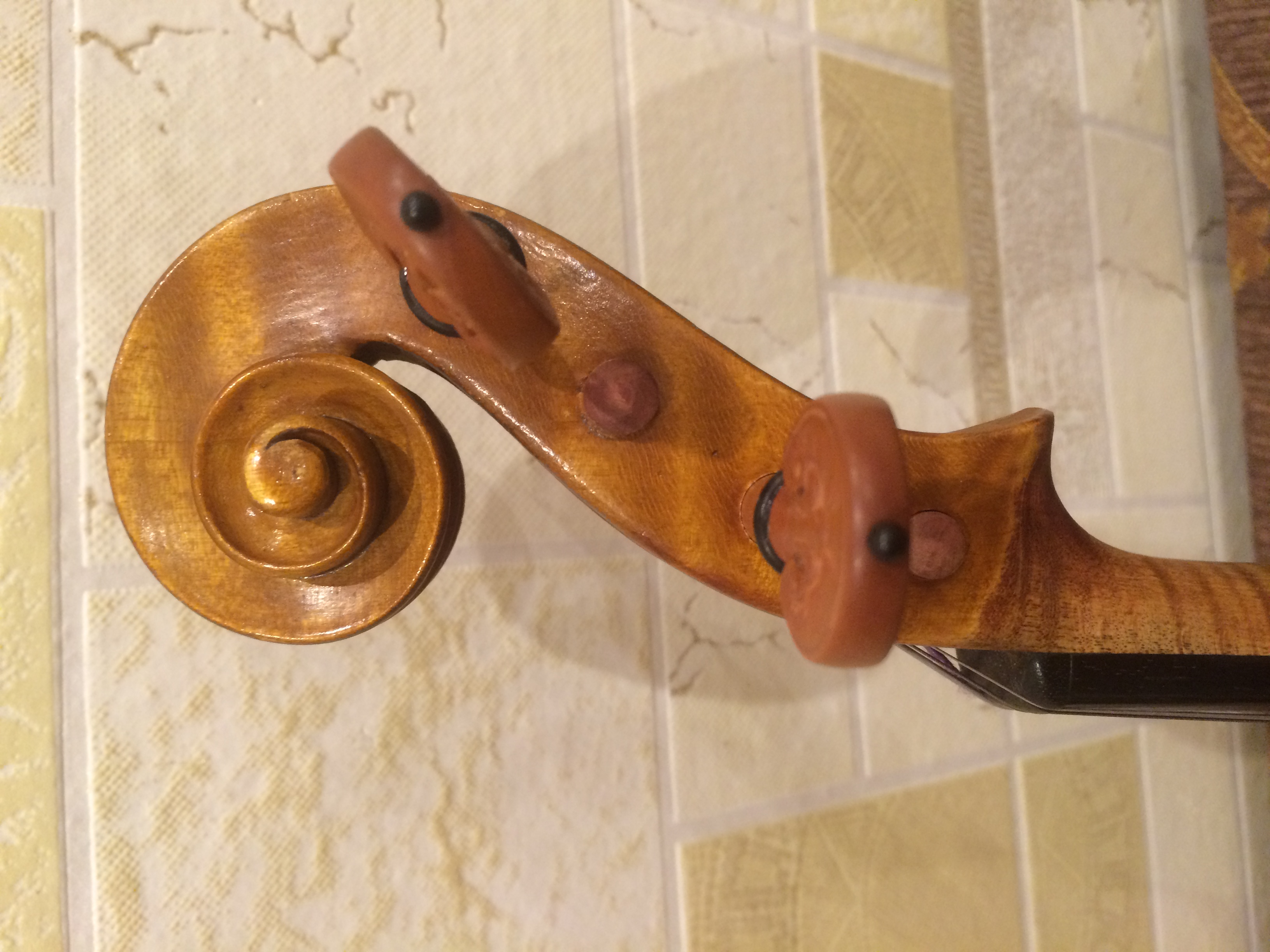 Друзья, мне весьма нравятся скрипки и я частенько их меняю. Вот мой новый инструмент, хочу знать ваше мнение. Скрипка интересна тем, что у неё головка кажись врезана, но при этом скрипка не старая Вообщем всем внимания и доброго состояния)