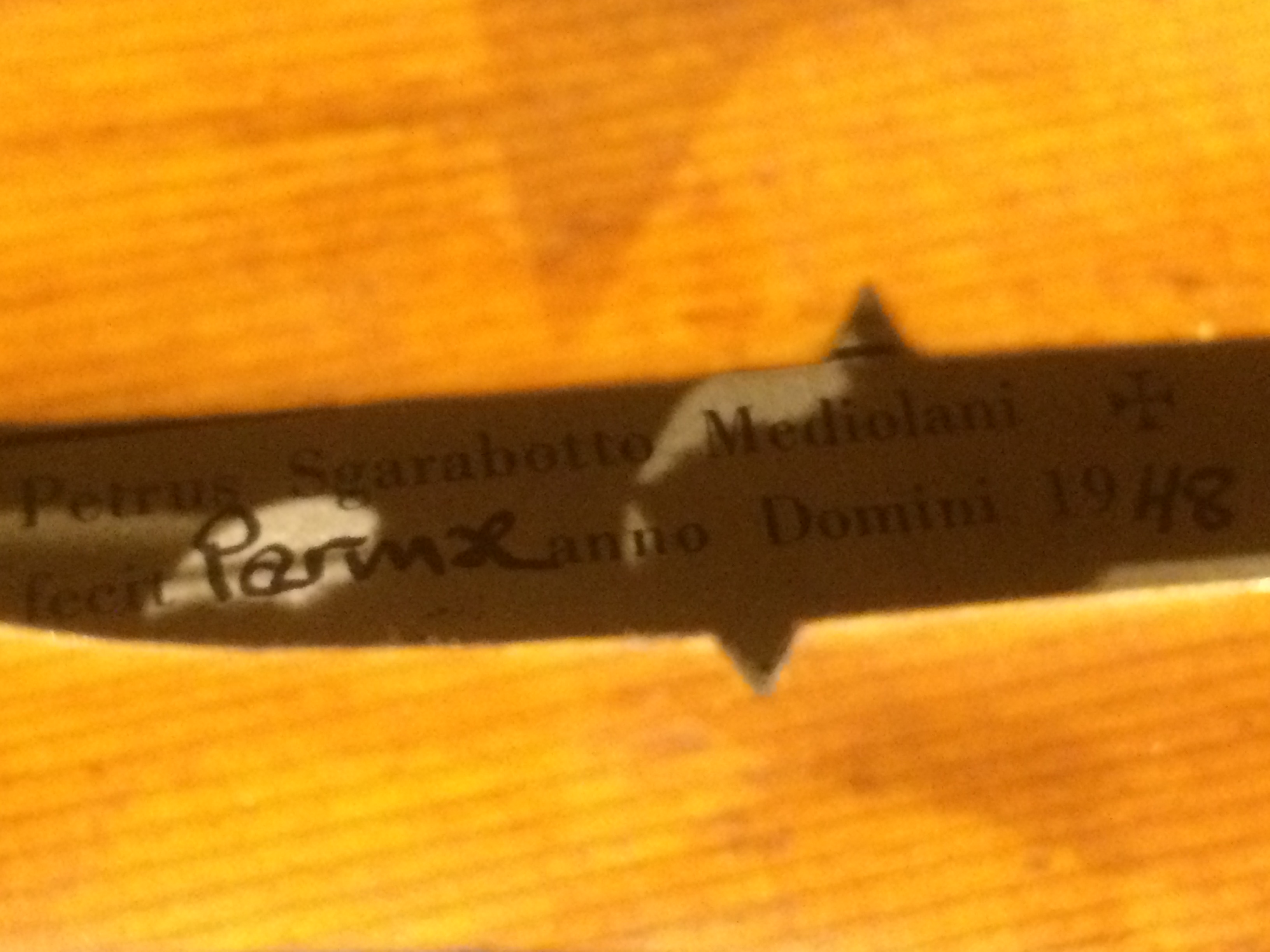 Я не какой-то спец, но по-моему эфы на этом инструменте не очень походят на эфы, которые делал мастер. И бумажка выглядит новой очень. Поэтому врят ли это оригинал, но хочется всё же прояснить что к чему