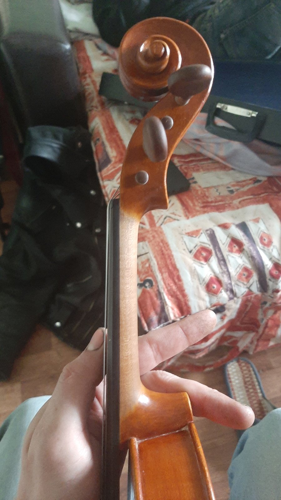 Последние фото получились более чёткими. Отличный инструмент!!! Жаль в советское время у мастеров не было качественного чёрного дерева на грифы и фурнитуру. Номер на голове тоже в лучших традициях советской эпохи нанесен, точнее нацарапан. Скрипка когда то была собственностью местной филармонии, театра или училища?
