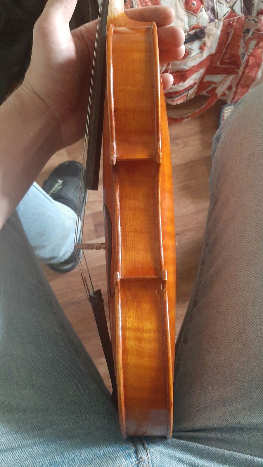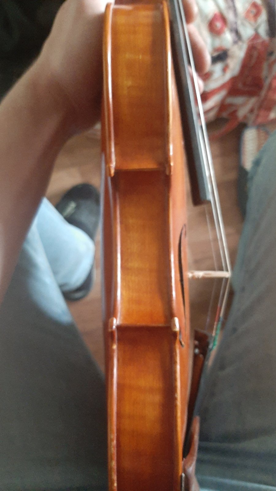 Здравствуйте! Мастеровой инструмент, не старый. Фото не четкие, сильно углубляться в комменты по столярке не могу. Голова не очень понравилась. Если хорошо звучит можно всю жизнь на такой скрипке играть и радоваться. Не Дмитриев случайно?