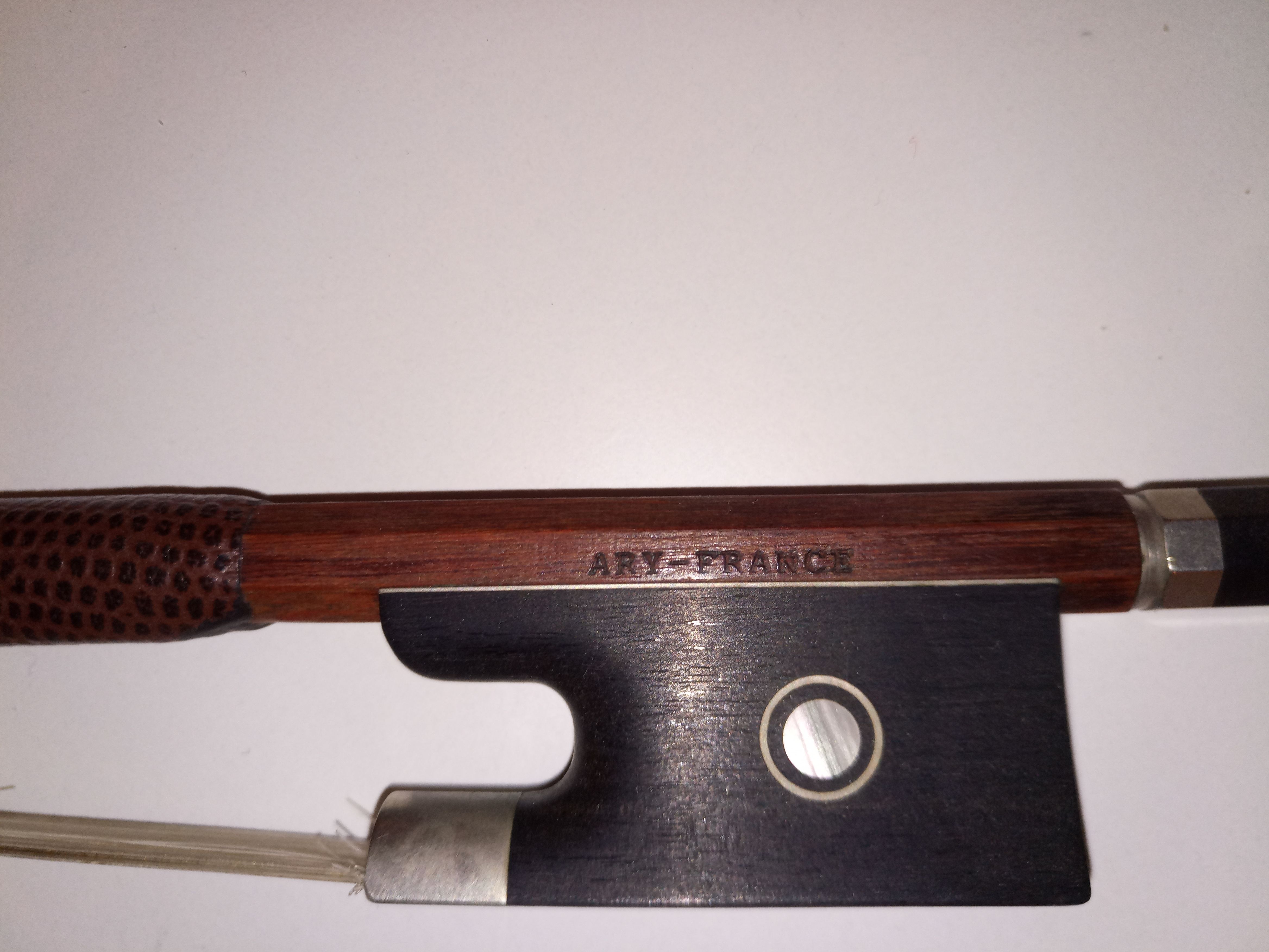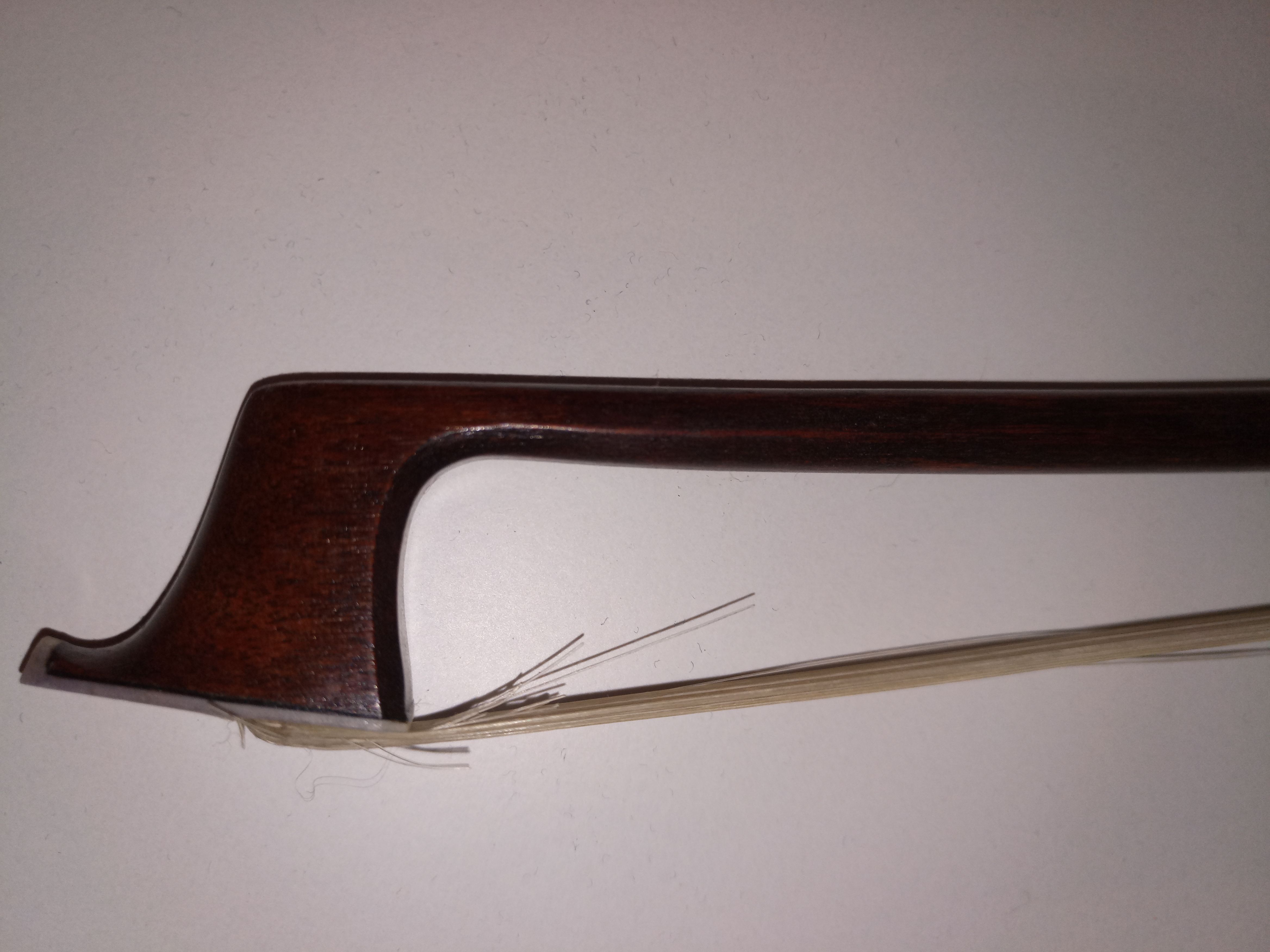Здравствуйте! Похоже, что это французский фабричный смычок. Мне было бы интересно посмотреть на него вживую. Заодно и подправить смогу если вам это нужно.