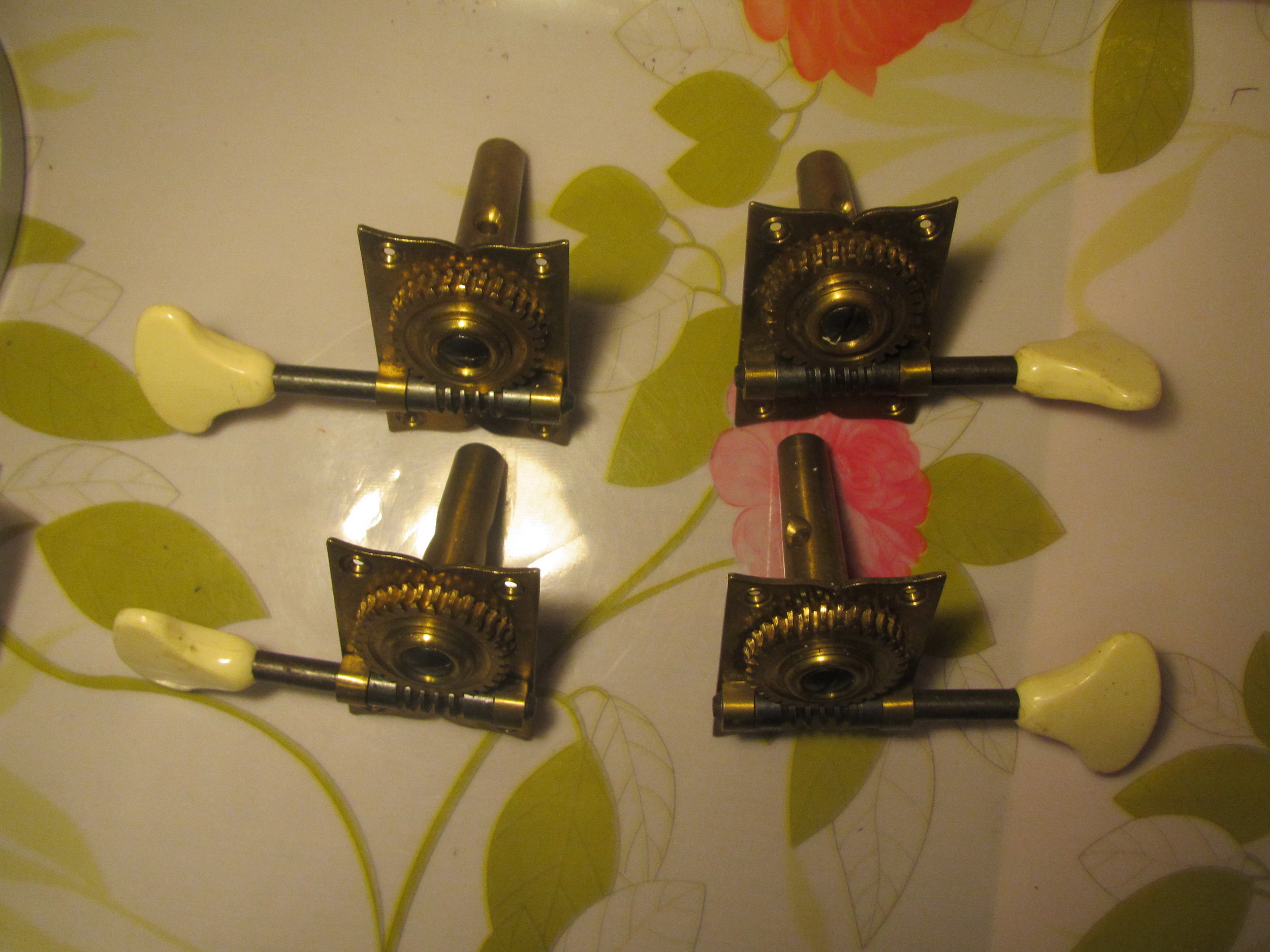 И ещё один комплект ординарной механики с металлическими колками,но ушки из белого пластика или кости(пока не понял),состояние идеальное!!!