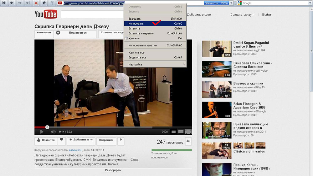 Комментарий к файлу: На youtube просто копируем ссылку в адресной строке браузера