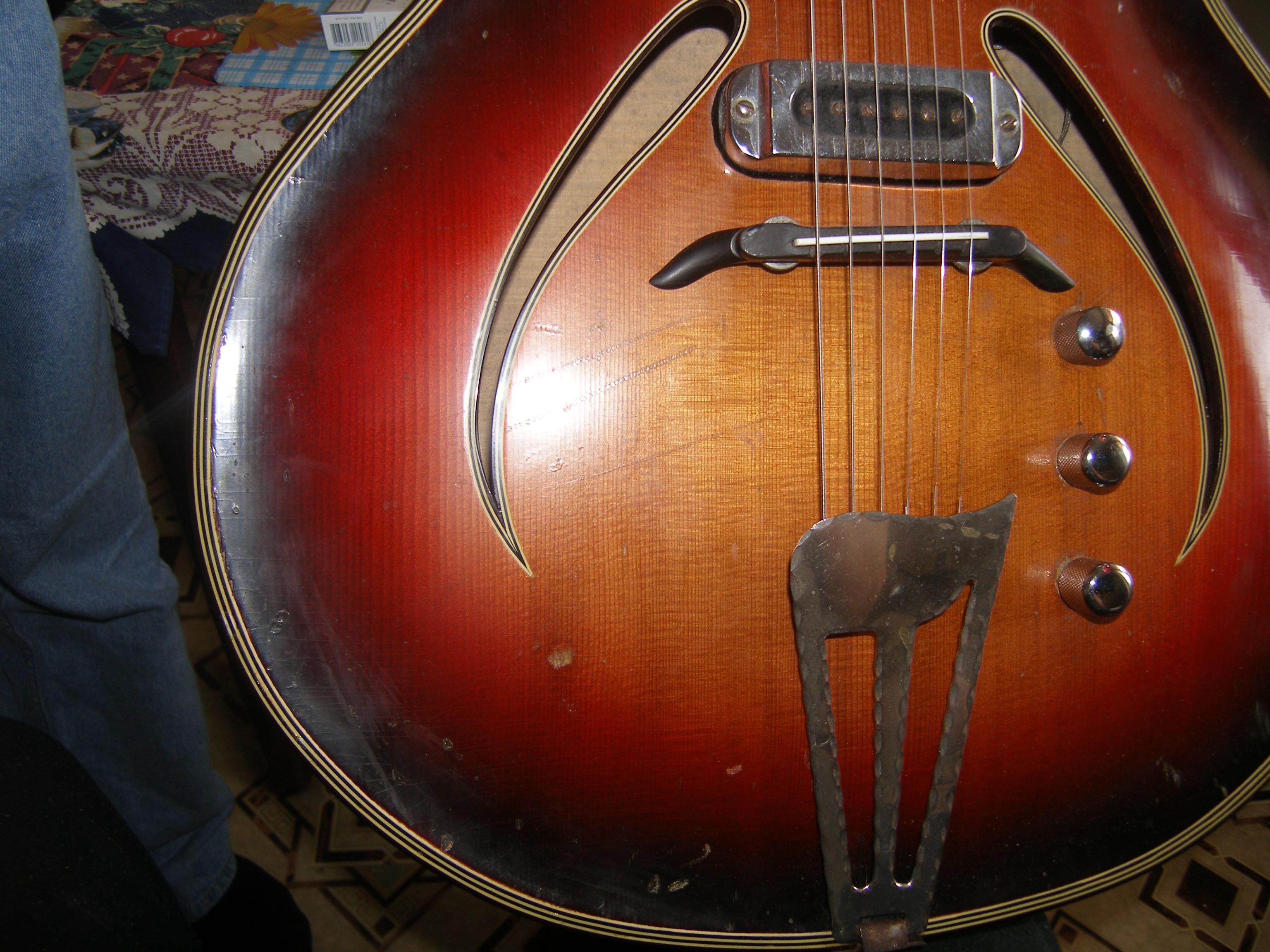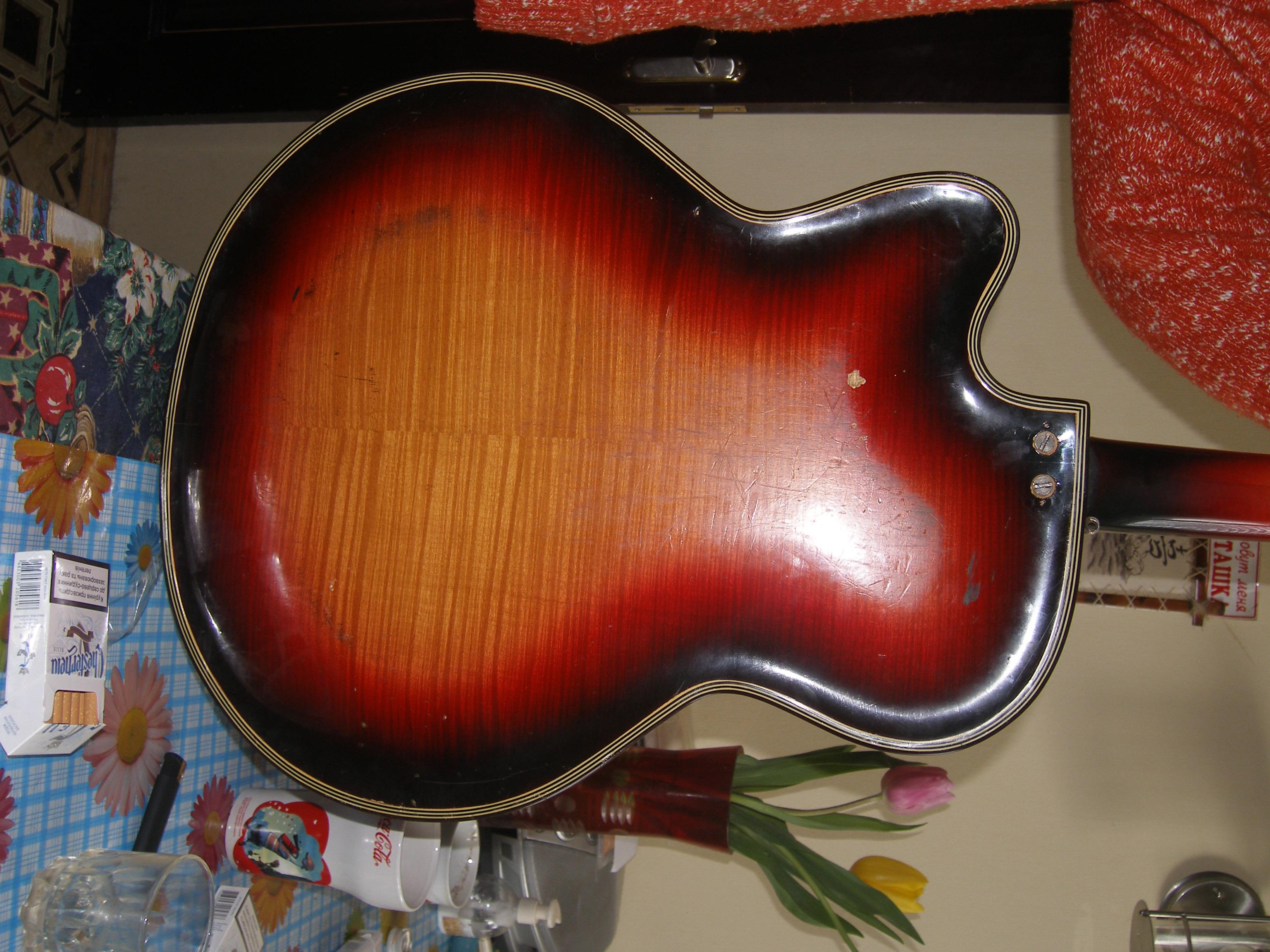 Немецкая гитара фирмы "Мюзима".Название даной модели "Рекорд".У меня такая была 1980-е г.г.выпуск. Гитара - конкретно джазовый вариант(по звучанию).Такой себе -"старенький  ,ретровский рарететик.