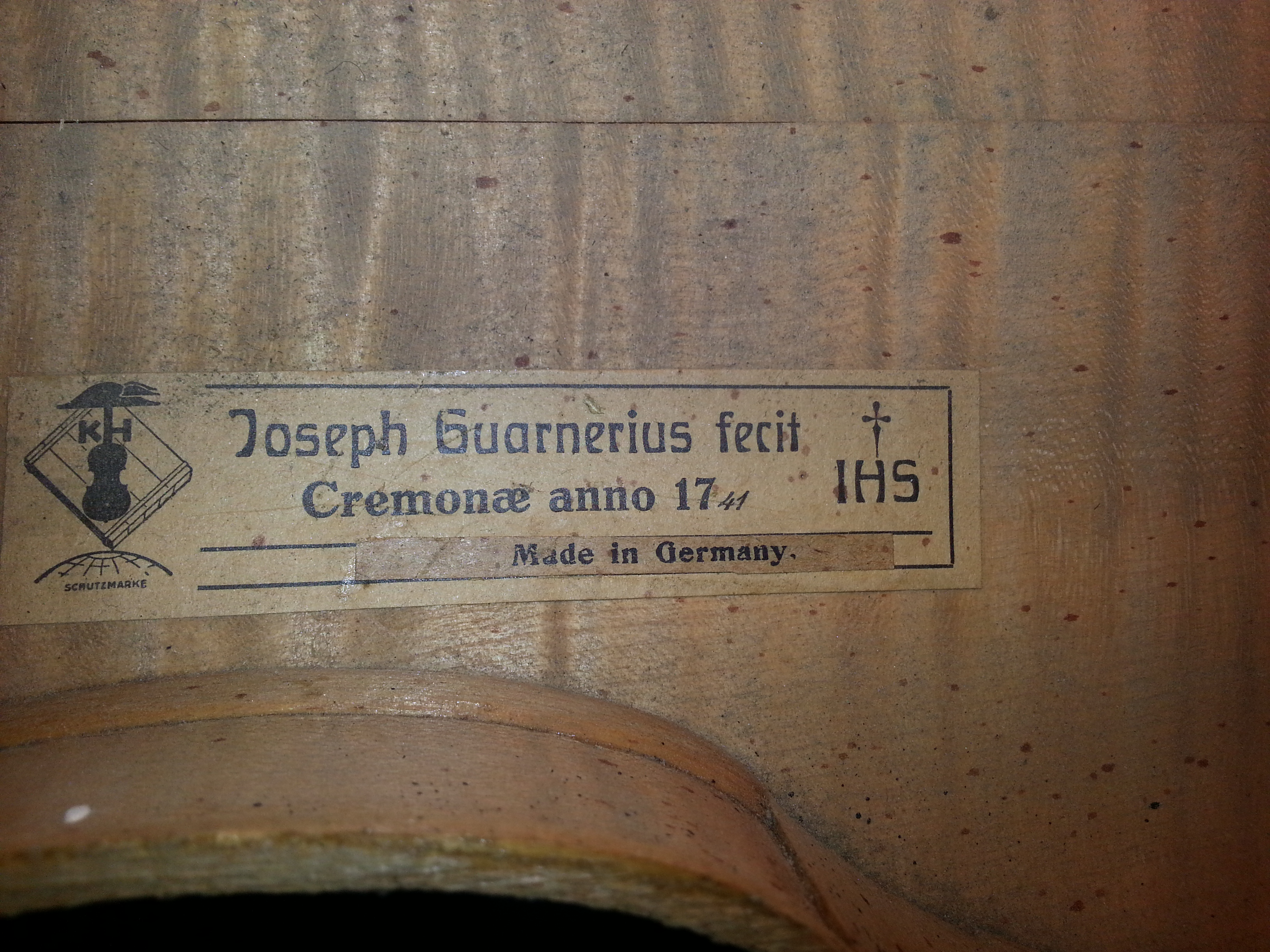 Принесли мне скрипку в ремонт, якобы немецкую, довоенную. Сомнения по поводу происхождения и возраста закрались сразу, уж слишком характерный инструмент и не старый. Фото самой скрипки потом, если будет интересно. Хозяин инструмента немного удивился, что я сомневаюсь в его словах, точнее в той легенде, которая сопровождала скрипку в этой семье(скрипка досталась по наследству от родственников, якобы трофейная), но снять полосочку грубо наклеенную на основной этикет разрешил. С позволения владельца размещаю фото чудесного превращения немецкой трофейной скрипки в ...