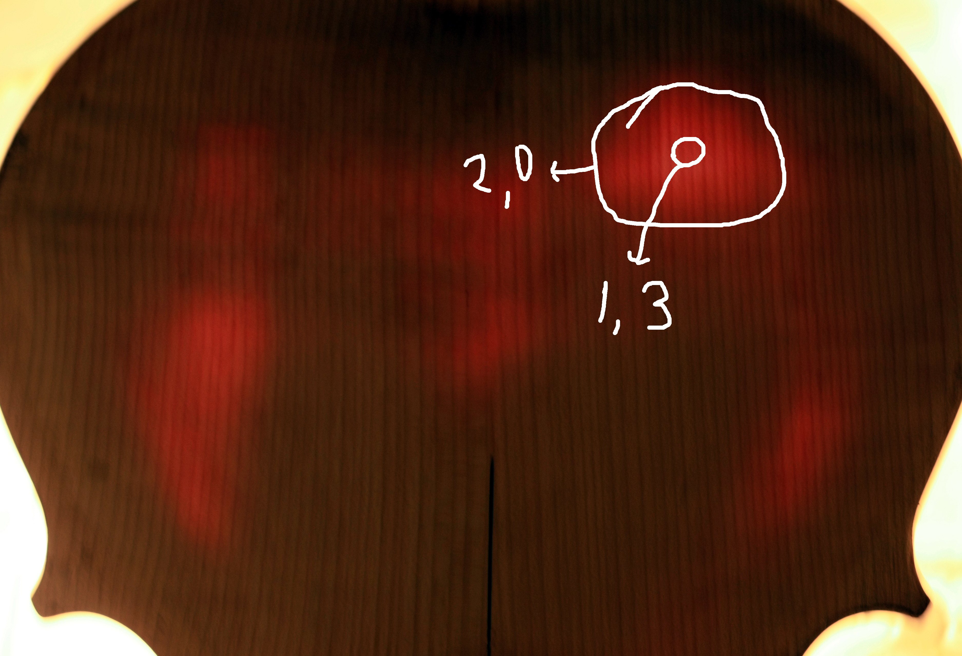 Так как лак снят, можно поговорить немного о толщинах. Для верхней деки дерева я так понял на мебельной фабрике не жалели. Самая светлая и яркая часть деки на просвет после снятия лака, оказалась 2.5mm, а все что на фото не светится, это 3.5-4mm. А вот с нижней декой ситуация конечно похуже.(см. фото) Я так понимаю что тут стоит вопрос в том, чего хочется получить в результате. Конечно, после ремонта, лучше московской фабрички она будет наверняка, а вот чтобы все было по феншую, нижнюю деку надо делать с нуля. Так как я не мастерю скрипку а реставрирую, с нуля ничего делать не буду. Просто сниму лишнее дерево и попытаюсь поработать над двумя-тремя неправильными местами нижней деки.