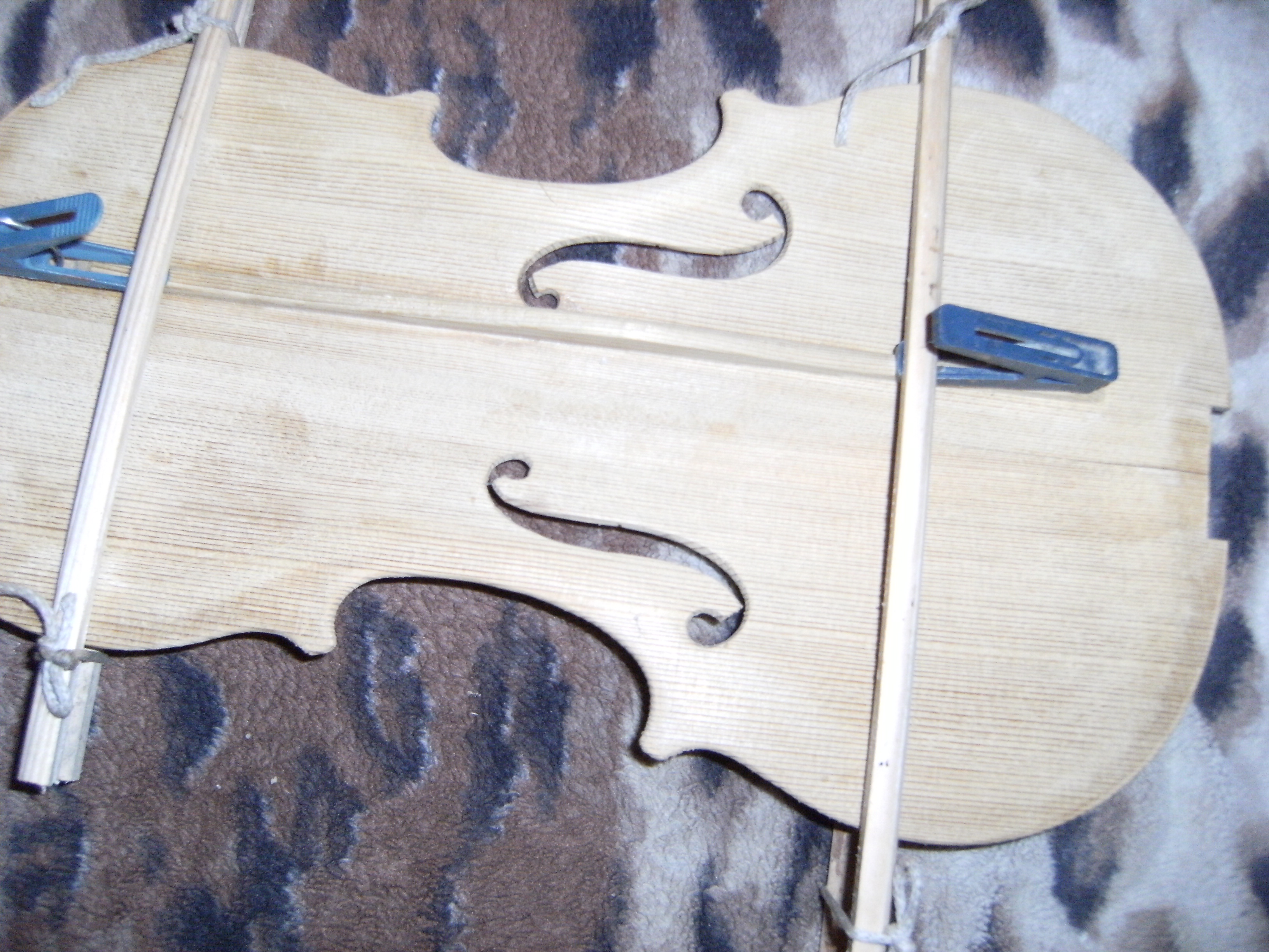 Всю жизнь наблюдал как моя мать работая в филармонии ездила с виолончелью в тролейбусе приходила домой с раздавленным инструментом,а вечером концерт....В глазах ужас и тут в ход шло все:прищепки резинки от трусов палки со свалки бушные шнурки....Как это выглядело видно на фото.Примитивно но эфективно.Помогало на сто процентов.Более серьезное оборудывание можно сделать из паяльника;из держака для лопаты можно сделать струбцины из сита можно вырезать обручики.Тему могу продолжать как использовать дешевые подручные материалы и достигать приемлемого результата в плане функцинальности