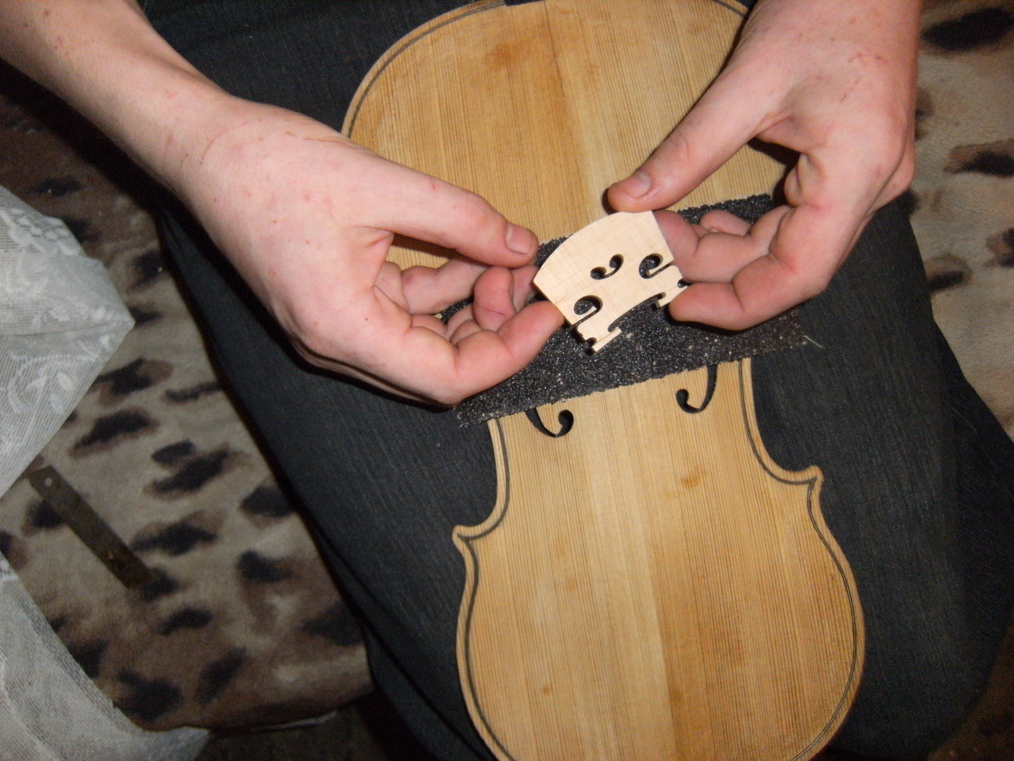О да, в провинциальном городе да еще в советское время, с виолончелью в троллейбусе... Итог-ни одной целой виолончели. А сколько их "кулибины" зачинили до смерти Безусловно настоящий мастер должен обладать смекалкой и уметь делать инструменты из подручных средств. Всяко в жизни бывает. Даже имея профессиональные инструменты приходится выдумывать различные приспособления. Но все таки на мой взгляд наждачка для подгонки ножек скрипичной подставки крупновата...