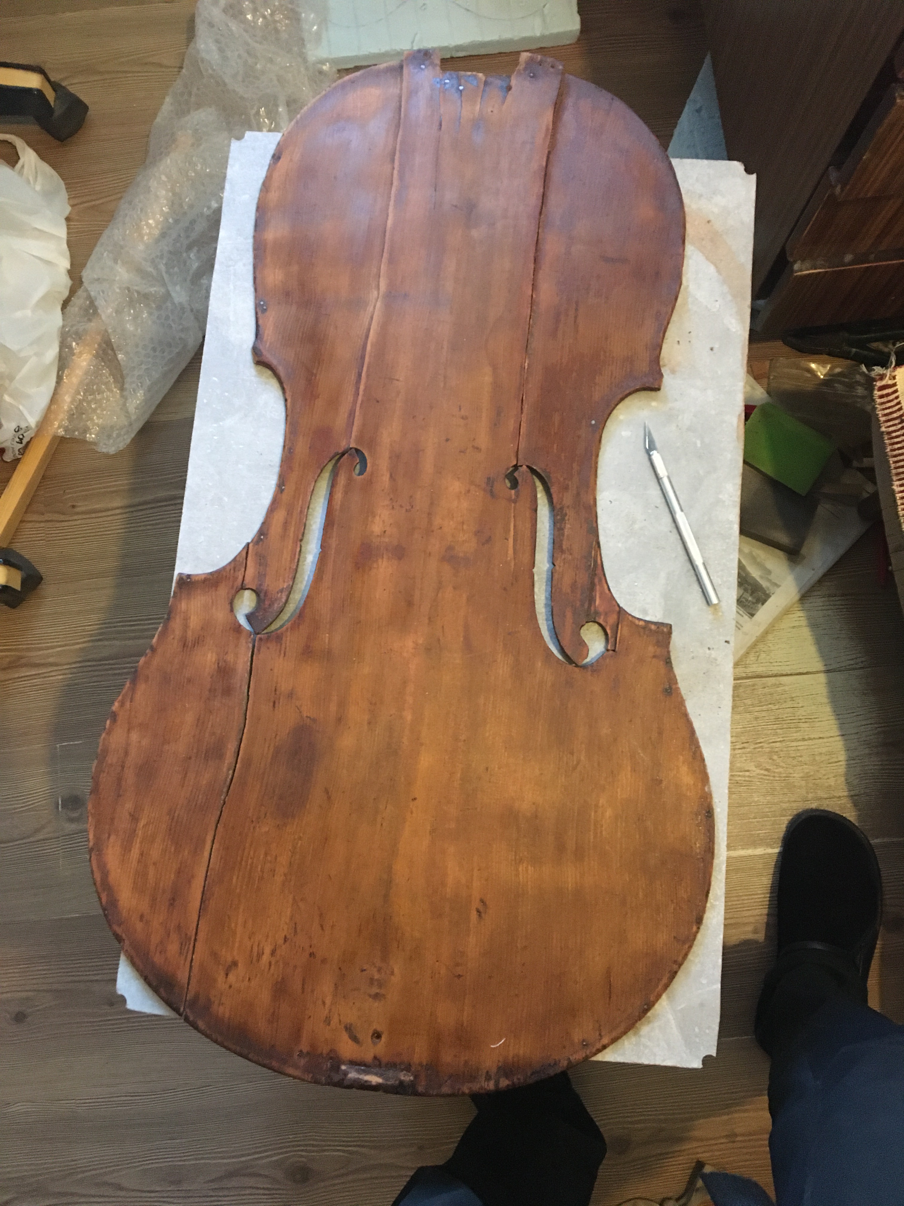 Здравствуйте. Мне предложили подарить виолончель и я, глупец, согласился. Состояние вы увидите на фото. Принес домой и ужаснулся. Старинная говорил дружбан... триста сотен гвоздей и шурупов, ужасная краска непонятного цвета и гриф месяцем. с трудом удержался и не выкинул. Принял решение склеить и посмотреть, что это за инструмент такой. Содрал лезвием краску с дна и увидел там волнистый клен. Да и дека в месте подставки не треснута. Решил, что буду ремонтировать. Скачал книжки, какие были в интернете и прочел их. Но на некоторые вопросы, скорее всего глупые, я ответа так и не нашел и поэтому очень надеюсь на ваше понимание и содействие. И самым первым делом меня интересует клей. До этого я всегда клеил на тайтбонд красный все и не парился. Тут я прекрасно понимаю, что нужен мездровый клей и понимаю почему, чтоб можно было разобрать. Но трещины на деке нужно тоже только им или все же можно тайтом? Я увидел ролик на Ютюбе, где дядьку заругали за то, что он там тайтом подклеил что-то и ему сразу в комментах указали на то, что с первой ноты ясно, что он убил звук. Я понимаю, что моей ненаглядной и не ЗВУЧАТЬ то нигде, но и учиться делать тяп-ляп не хочется.